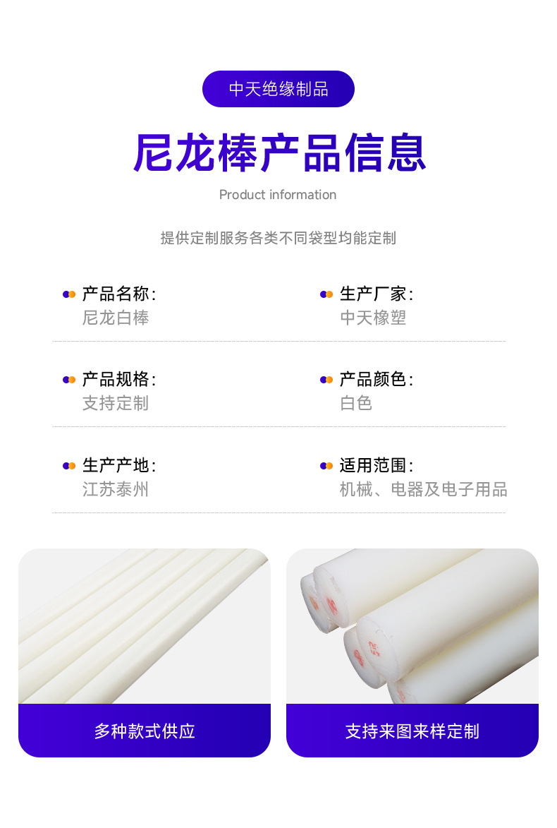 白いナイロン棒純新材料打設pa6プラスチック棒中実丸棒耐摩耗加工零切工場卸売り