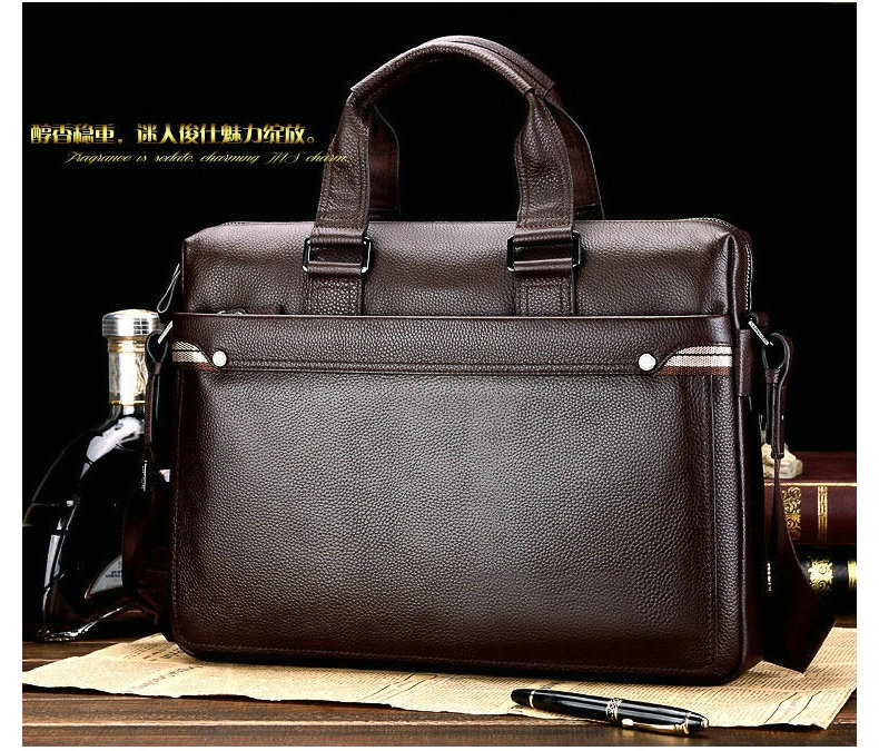 パソコン用ビジネスバッグ、オフィス通勤用、事務用バッグ、快適な質感のフォーマルバッグ、本革の高級感のあるメンズハンドバッグ