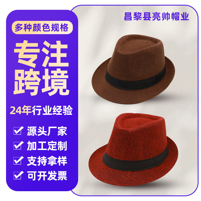 跨境礼帽亚麻英伦爵士帽巴拿马宽檐帽舞台表演帽魔术帽厂家批发