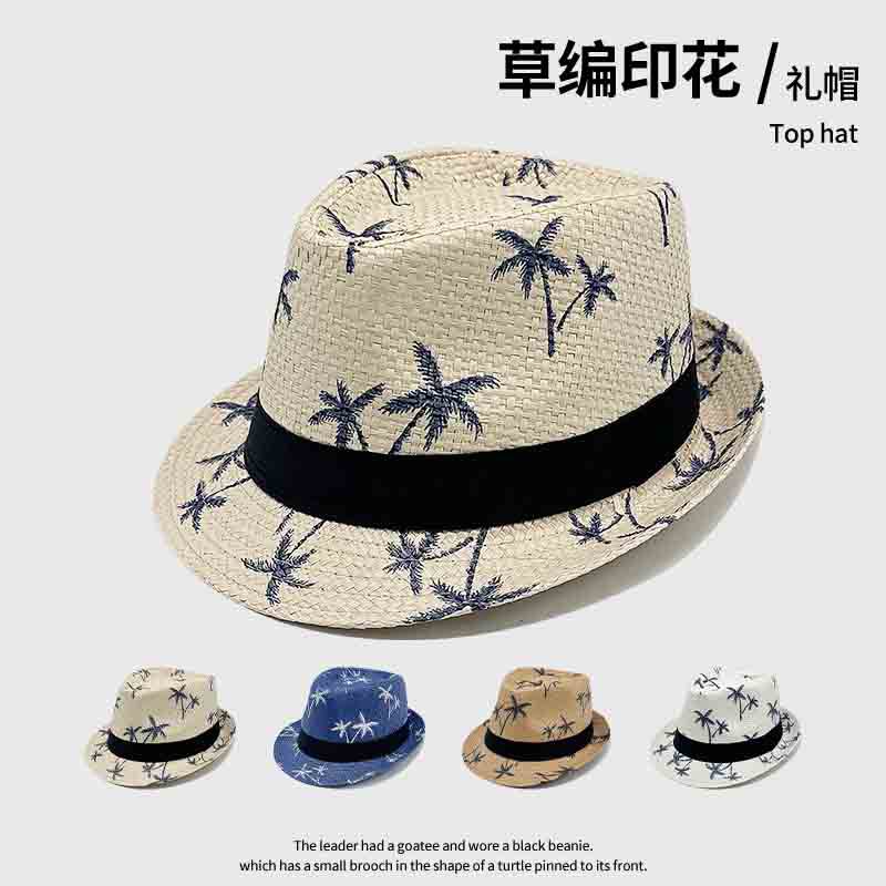 国境を越えたココナツの木模様のジャズ帽男性夏のレジャー帽お父さんビーチ帽屋外中高年日焼け止め帽