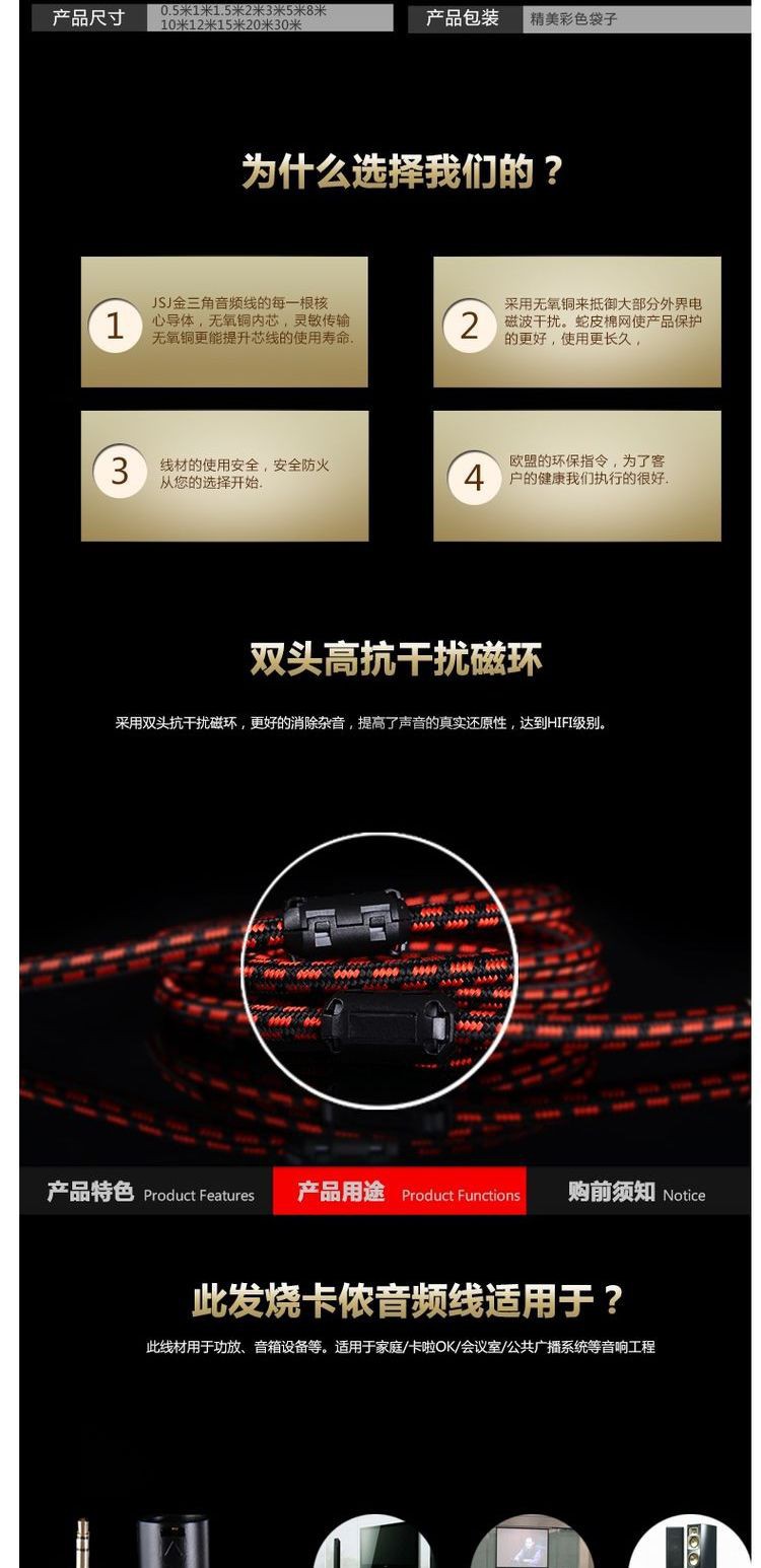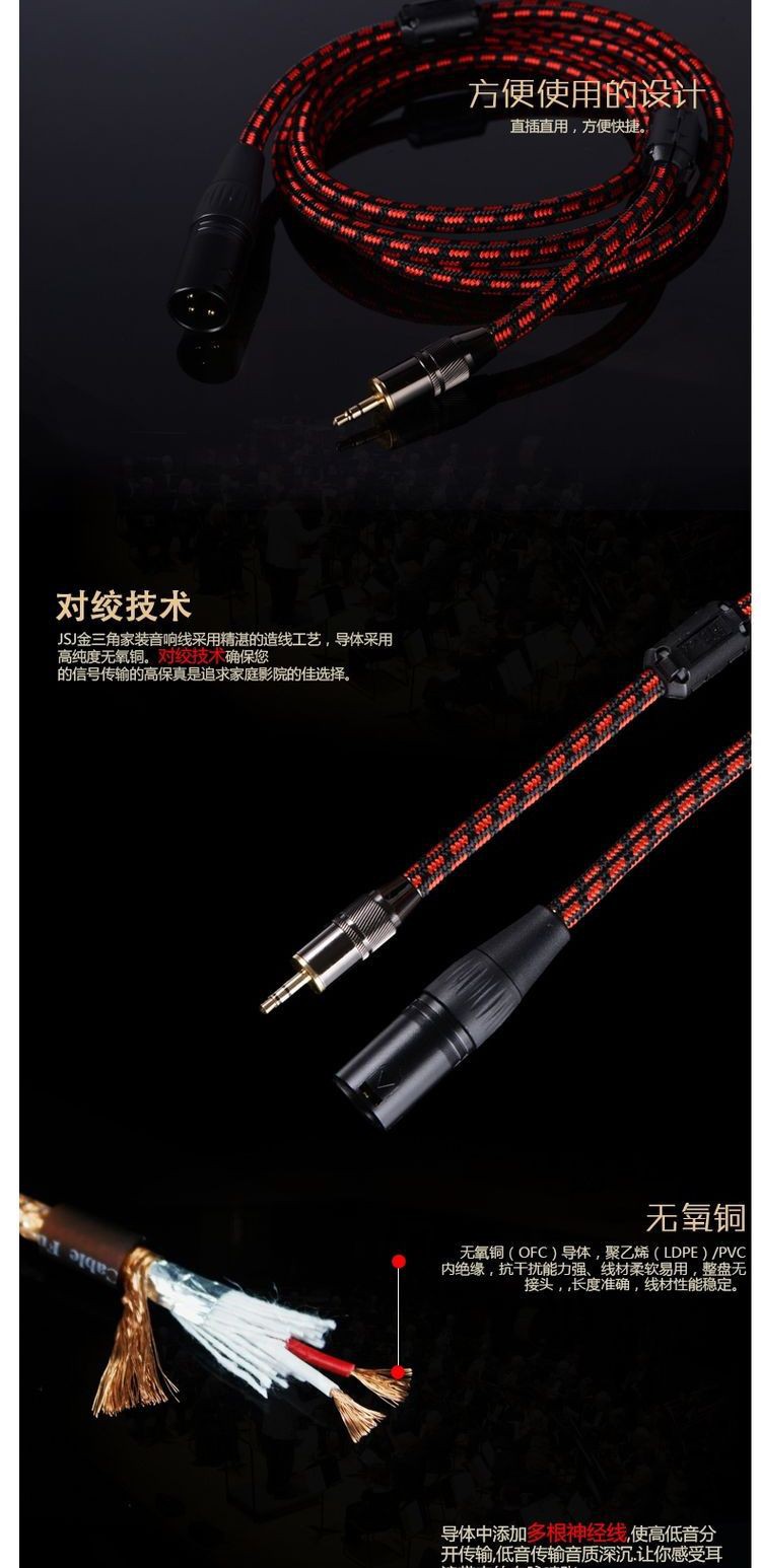 JSJ Jinshanjiao メーカー卸売無酸素銅スピーカー スピーカー ケーブル アンプ接続スピーカー バナナ ヘッド オーディオ オーディオ ケーブル
