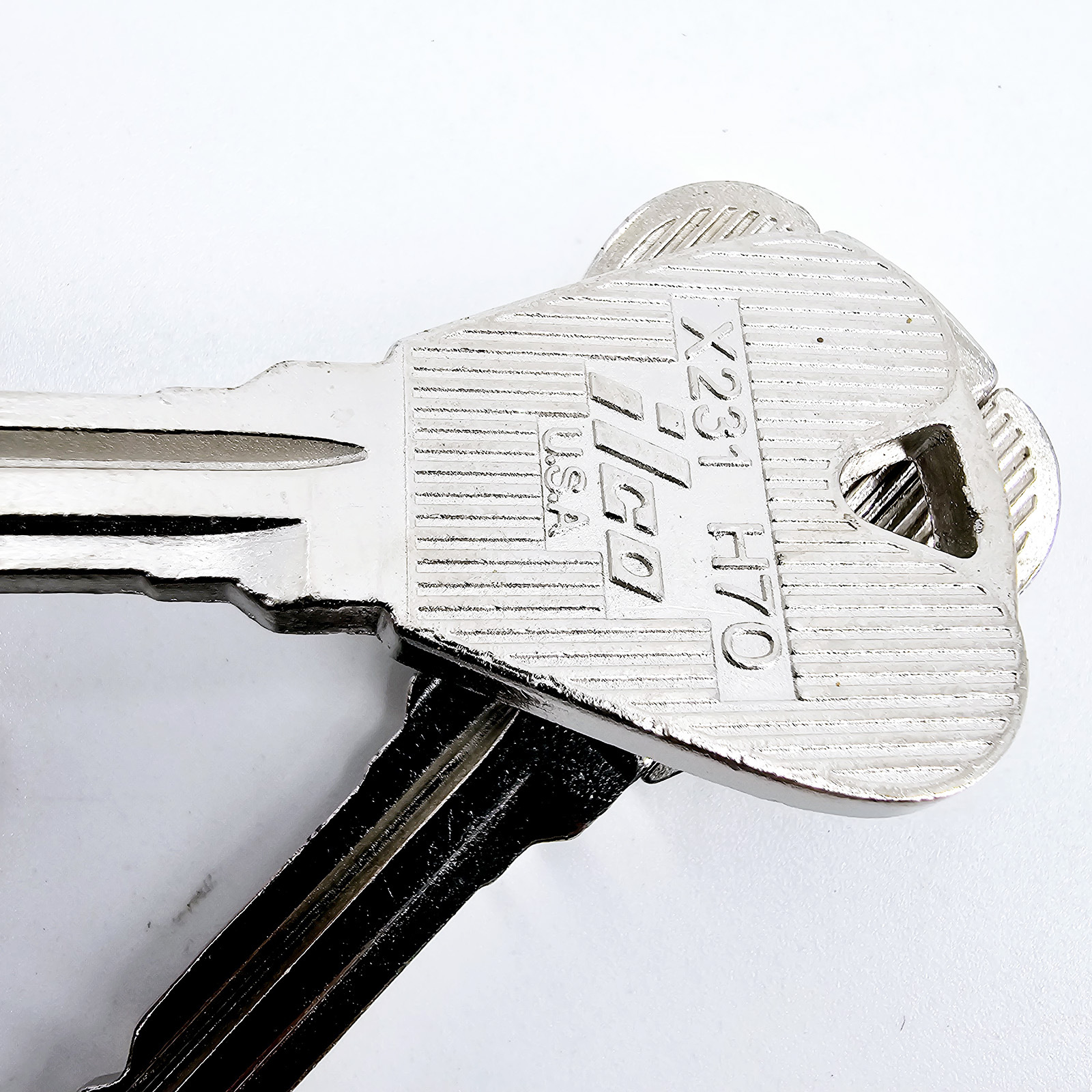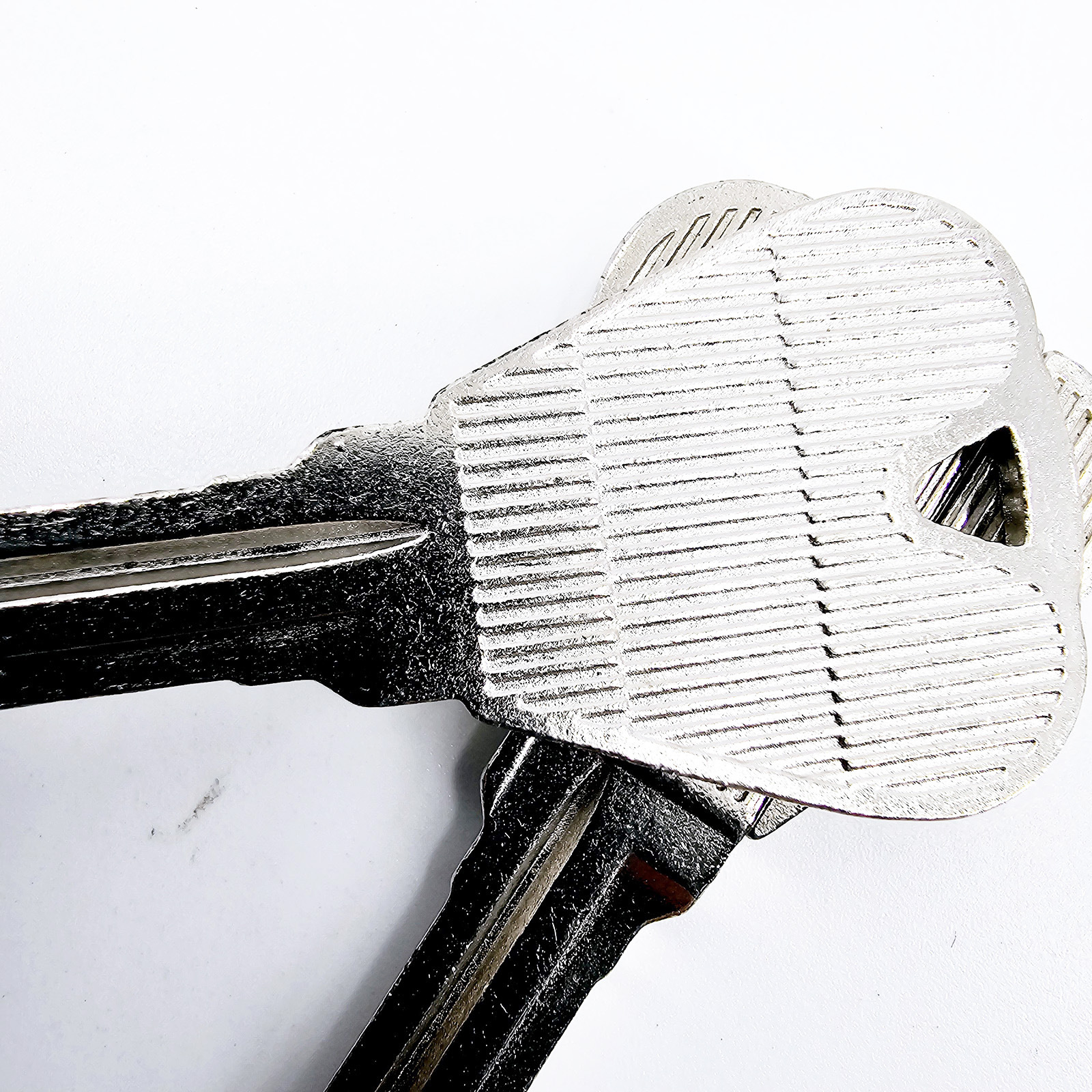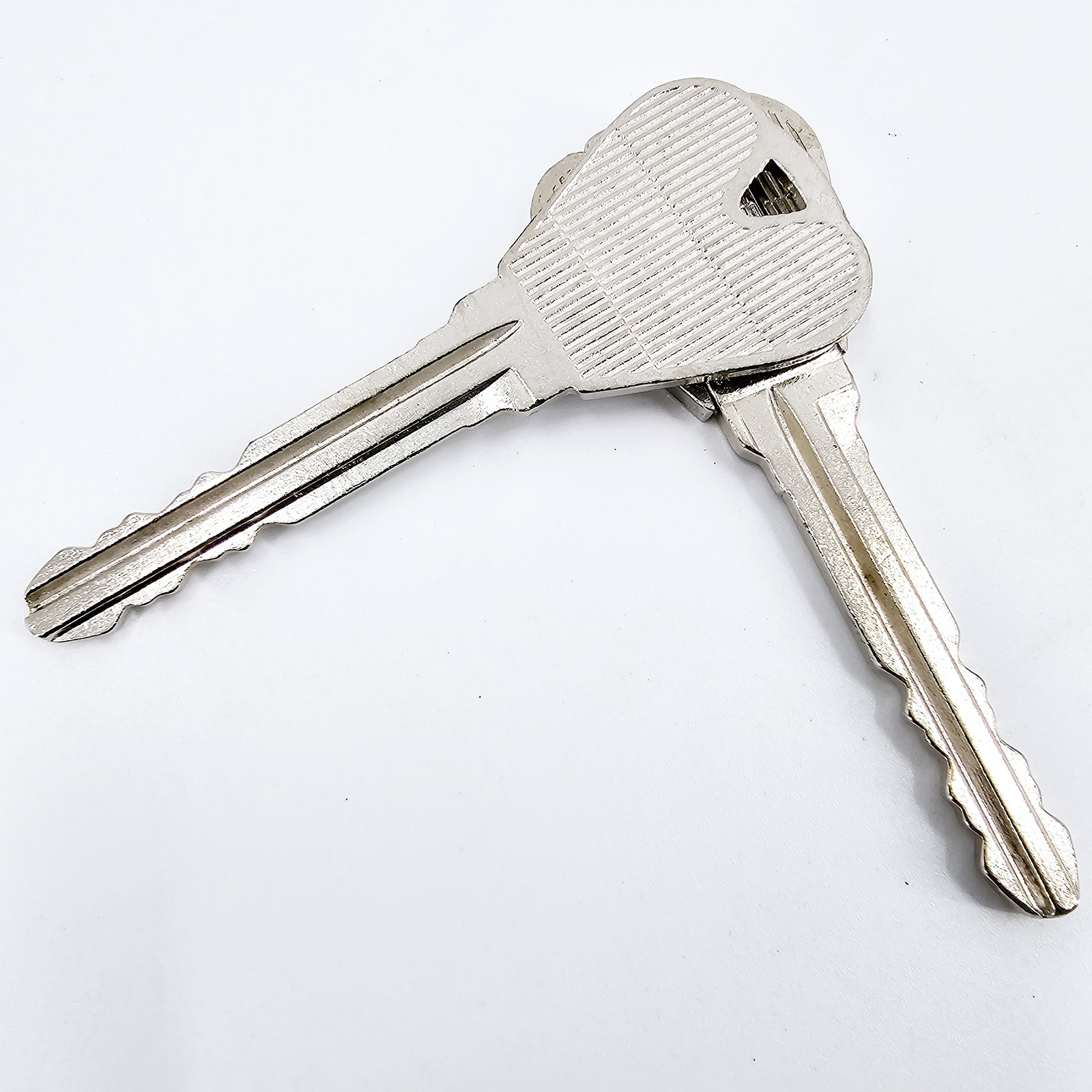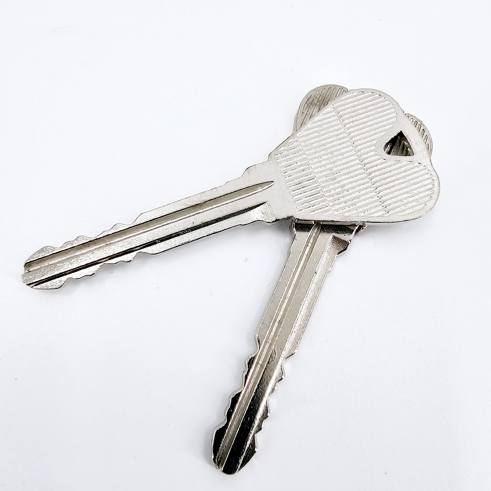 本道具一共两把钥匙,一把正常可交观众检查,一把特制机关钥匙,可重复表演!