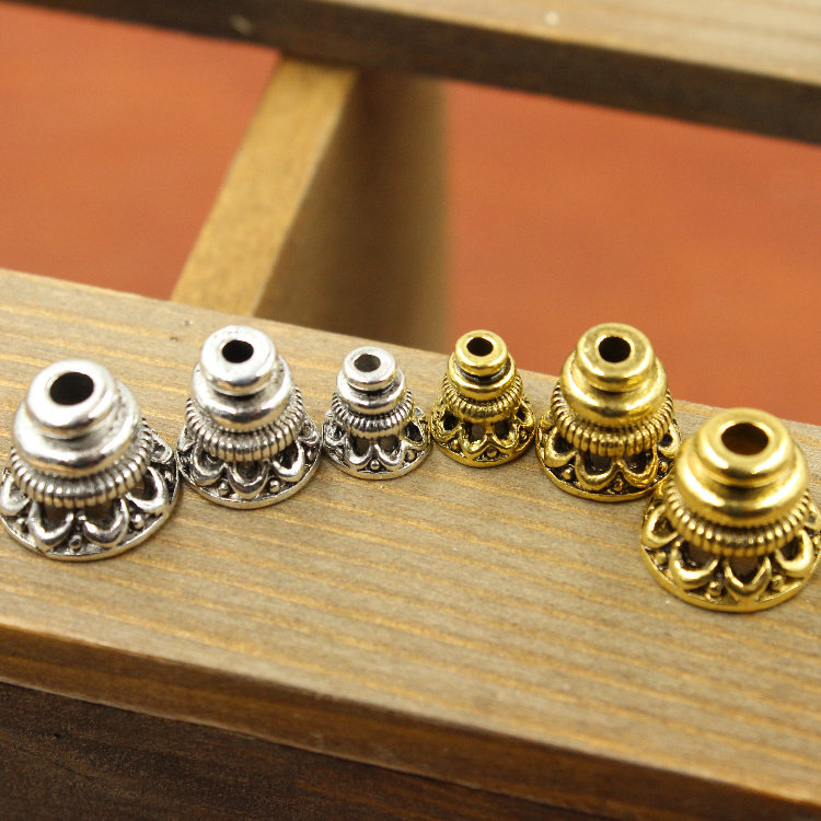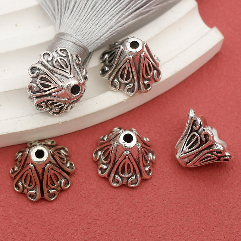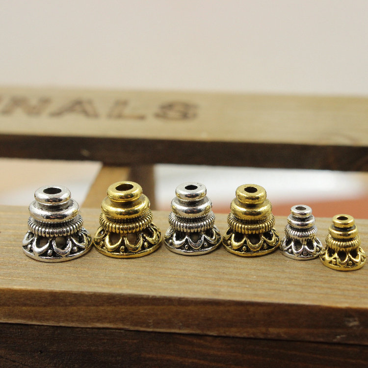 復古透かし三方仏塔塔頭8/10/12mmチベット銀花托珠帽流蘇帽diyアクセサリーアクセサリー