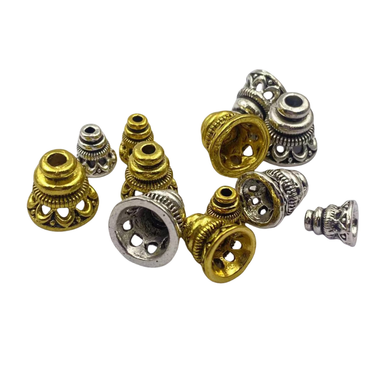 复古镂空三通佛塔塔头 8/10/12mm藏银花托珠帽流苏帽DIY饰品配饰