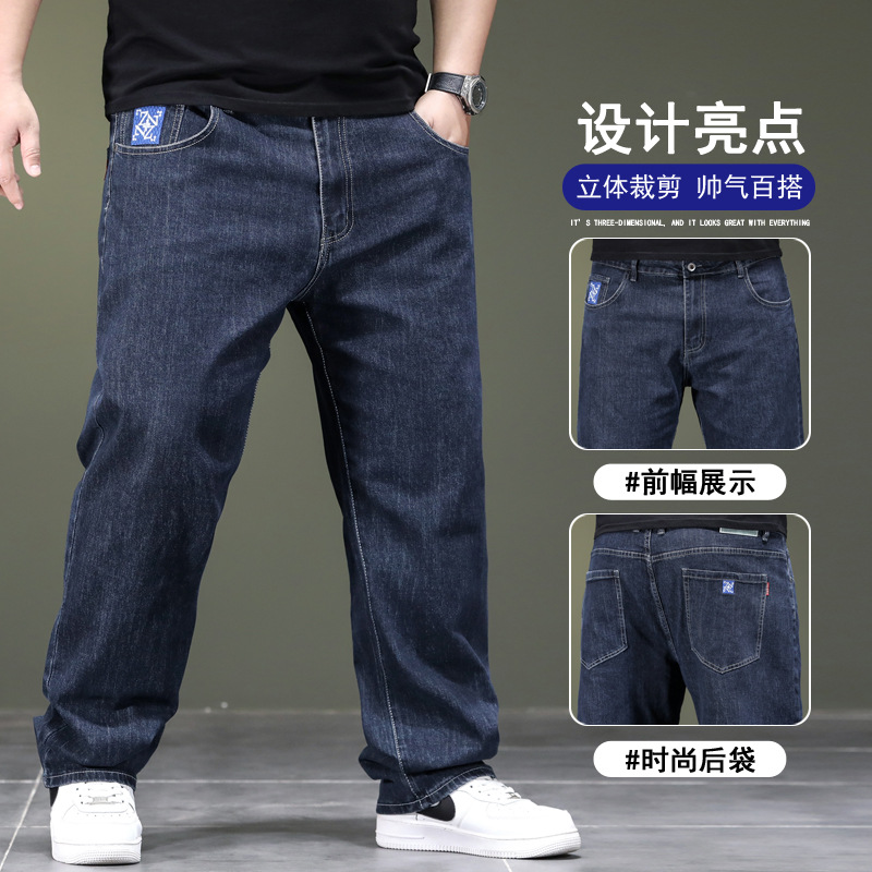 2024春秋にジーンズを弾いた男性は太っていて、太っていて、太っている人のストレートで体を修理する力のズボンを大きくした