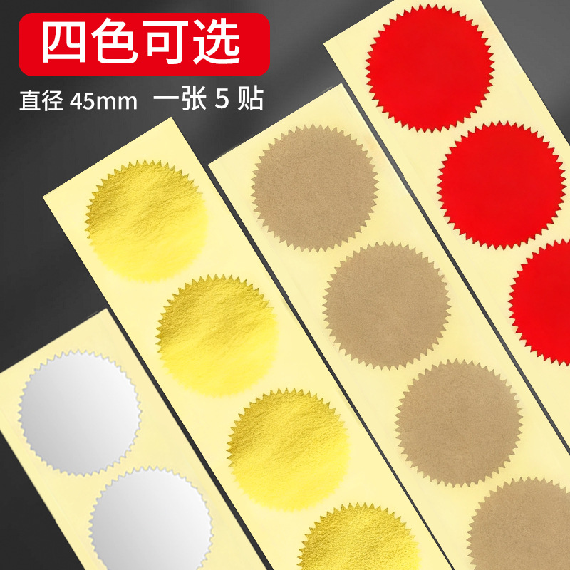 45mm 钢印贴纸齿轮不干胶圆形4色可选凸凹印章创意标签证书印鉴