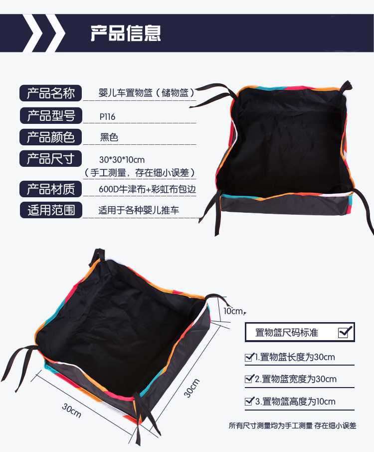 婴儿车置物篮 长宽都为30cm 高10cm左右 通用率99%,量大也可以根据您的车车定制