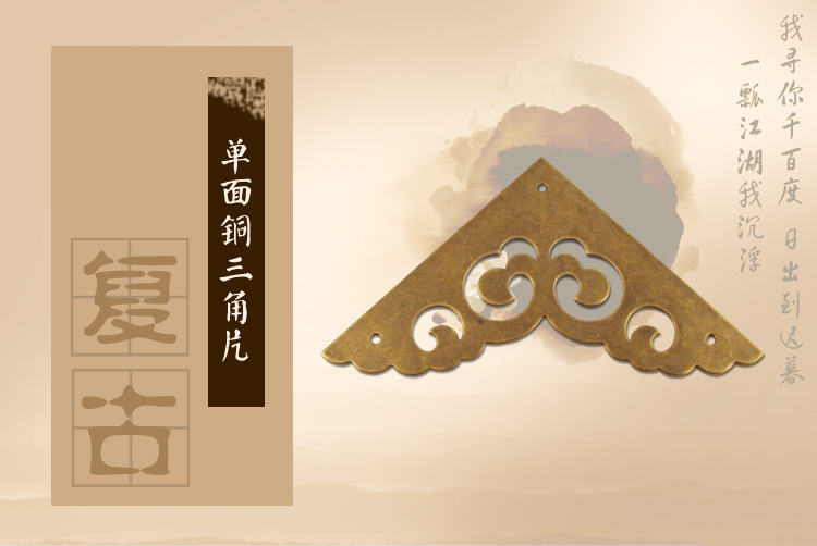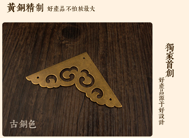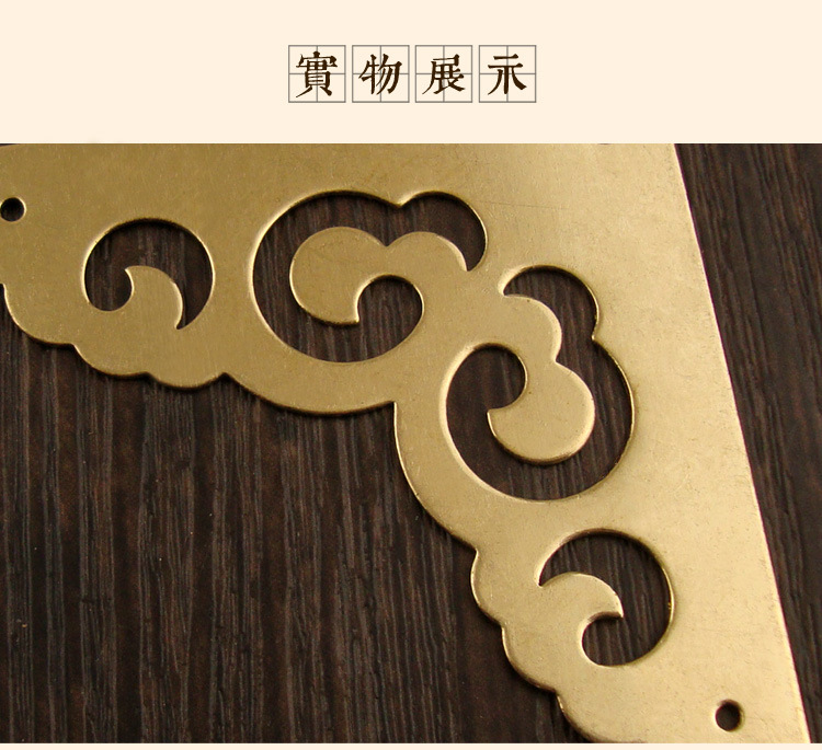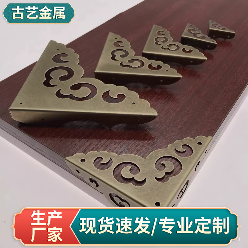新中式祥雲模様片面角材木箱銅製コーナーガードレトロ家具金物銅製アクセサリー箱バッグ金属コーナーガード