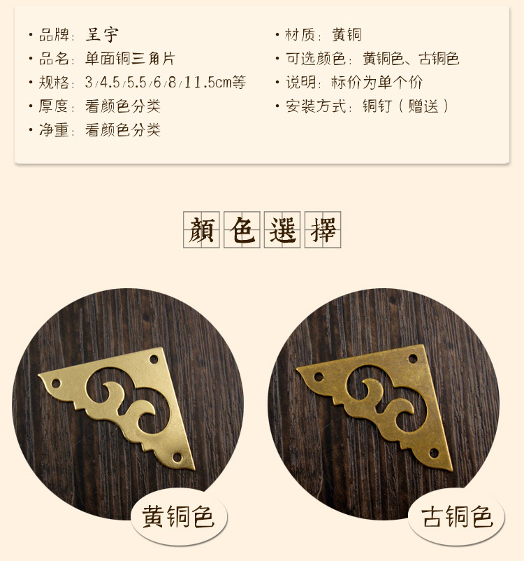 呈宇短辺純銅包角4.5cm低三面角コード模造家具銅部品ケース保護角銅角シート