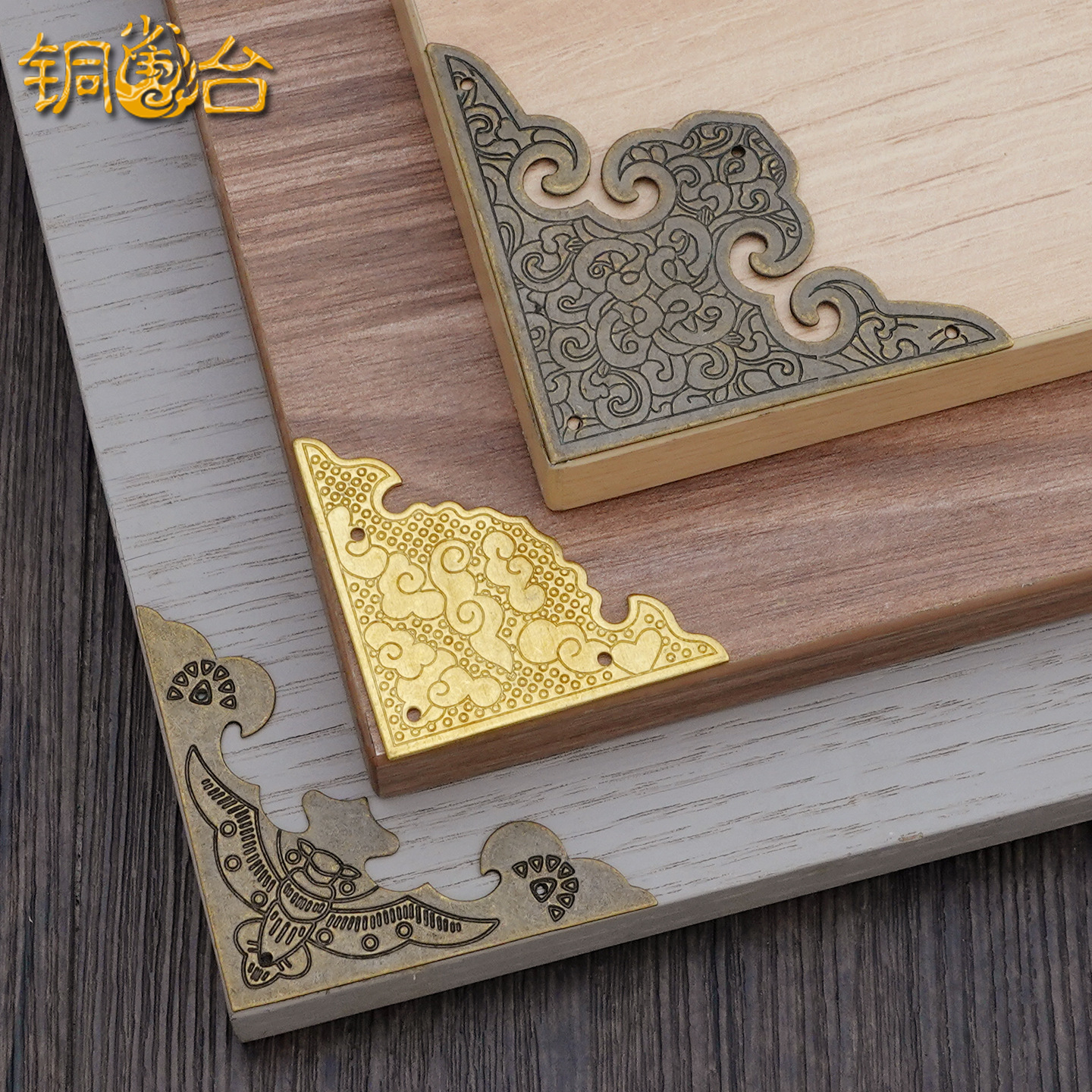 呈宇C055金属製コーナーガード、アンティーク調亜鉛合金製中空コーナーガード、中国風木箱コーナーガード、木製ボックスコーナーガード、レトロ
