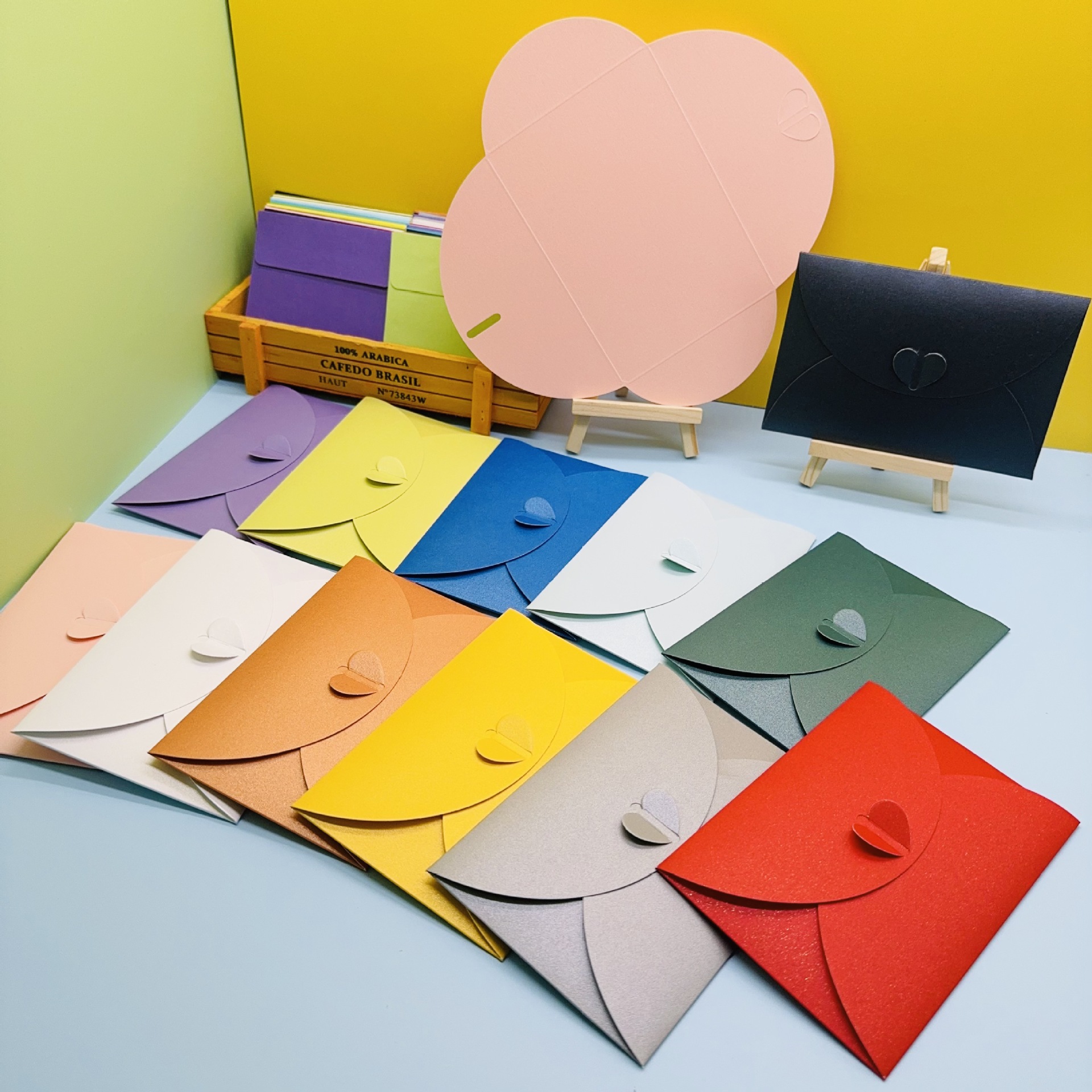 封筒クリエイティブ印刷ロゴグリーティングカード赤い封筒カラフルな真珠光沢のある紙小さな愛のバックルホットスタンピング招待状封筒