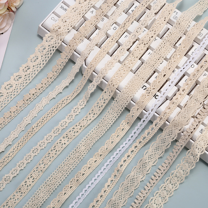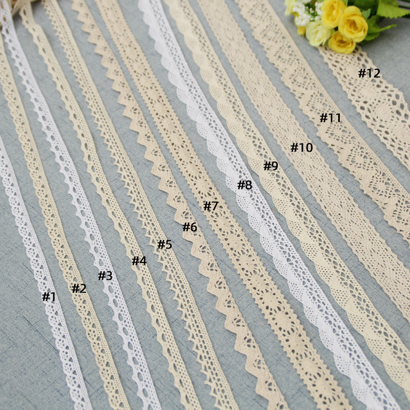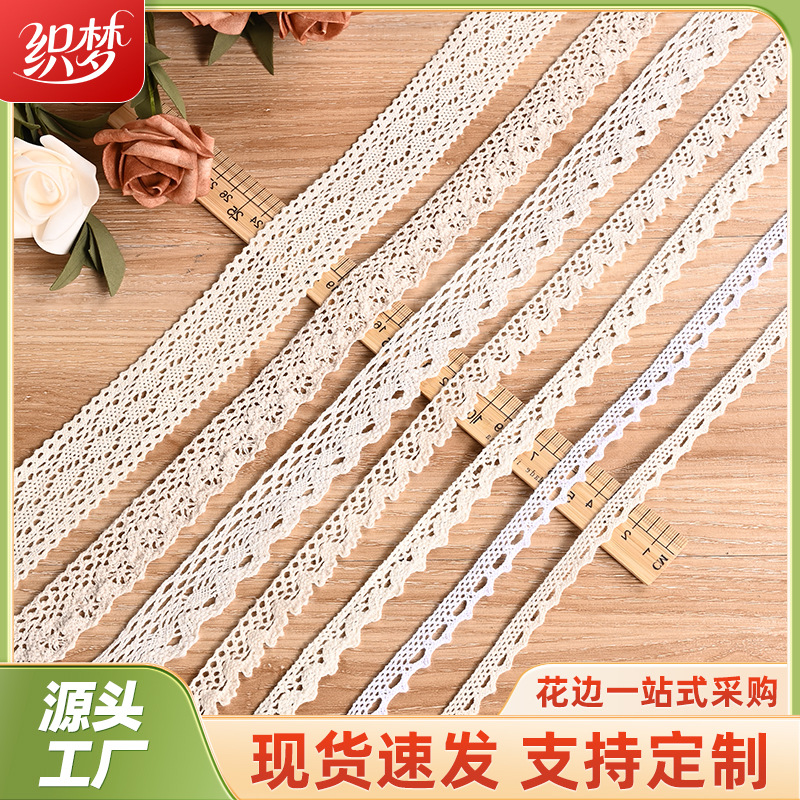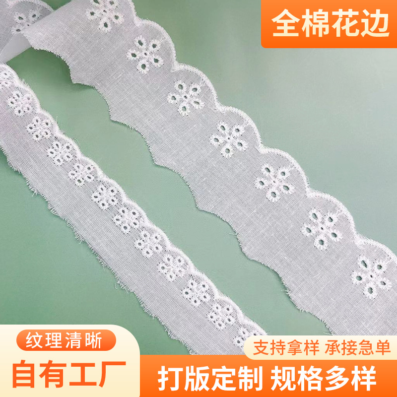 广东蕾丝花边厂家 现货包装材料扇形棉线花边 小波边条码装饰