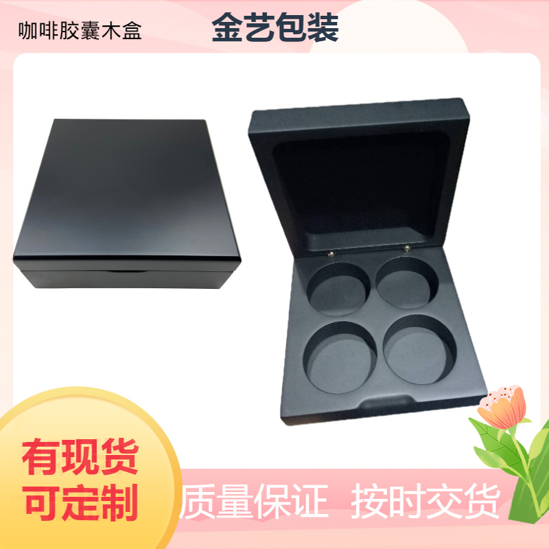 ロゴを印刷できる4つの溝付きMDF密度ボード素材のコーヒーボックスカプセル木箱をスポット供給