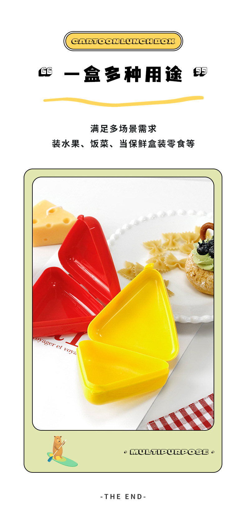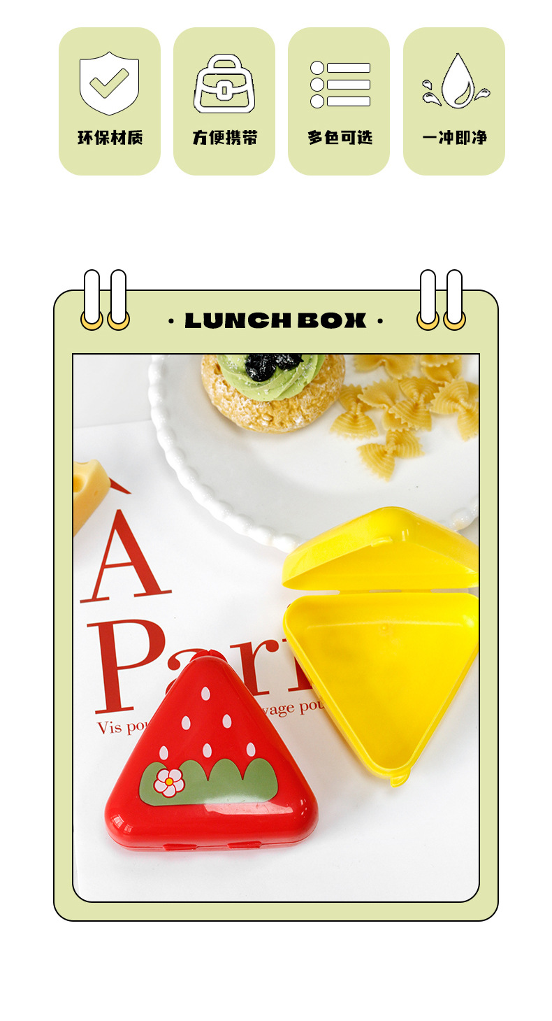 日本式のかわいいプラスチックの三角形のおにぎりの箱のアイデアdiy寿司の料理の鋳型の子供の間食のご飯の弁当箱