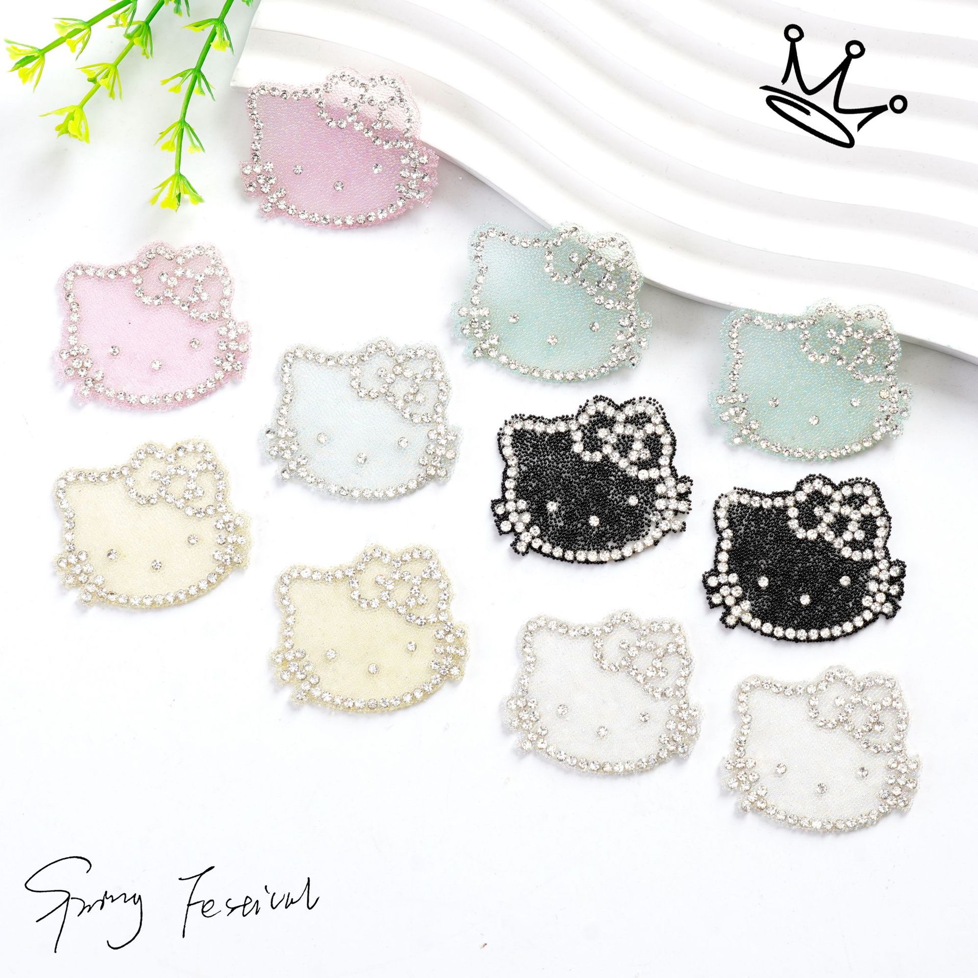 【产品颜色】有多种花色的烫钻、烫片、八角片、珍珠钻、莱茵石等可供选择,还可以为用户提供专版图案