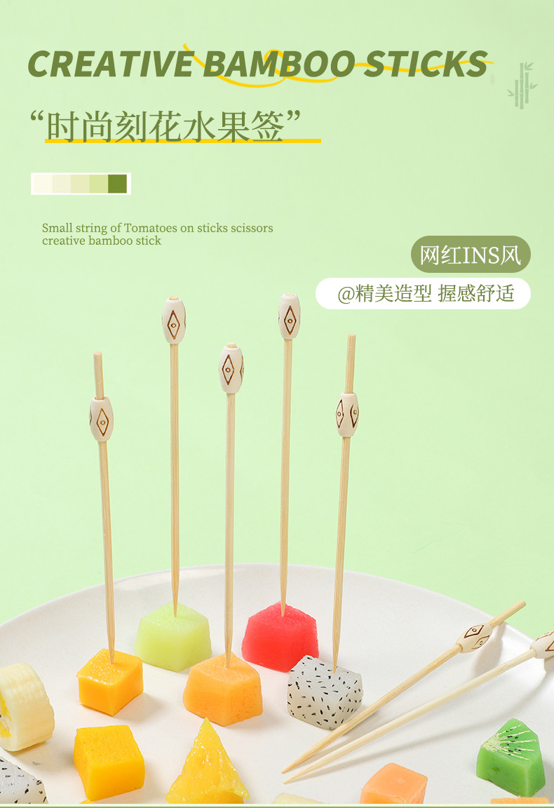 100本/竹串を包む使い捨て手作りハサミ果物串カクテル串串串串串卸売り芸術串串