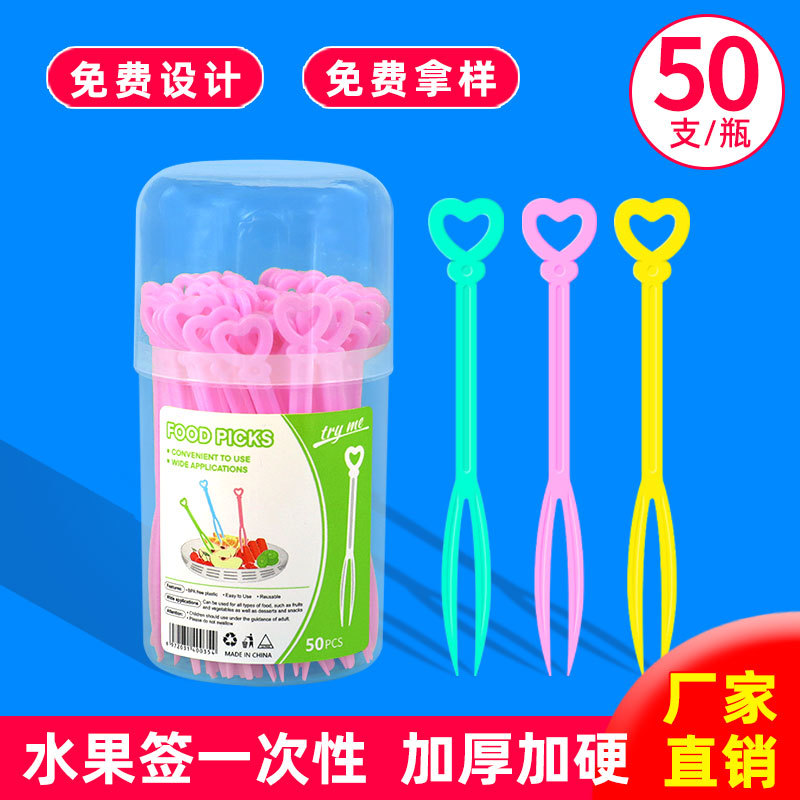 外国貿易卸売プラスチックフルーツフォーク使い捨てケーキフォーク軽食試食スティッククリエイティブハート型フルーツピック