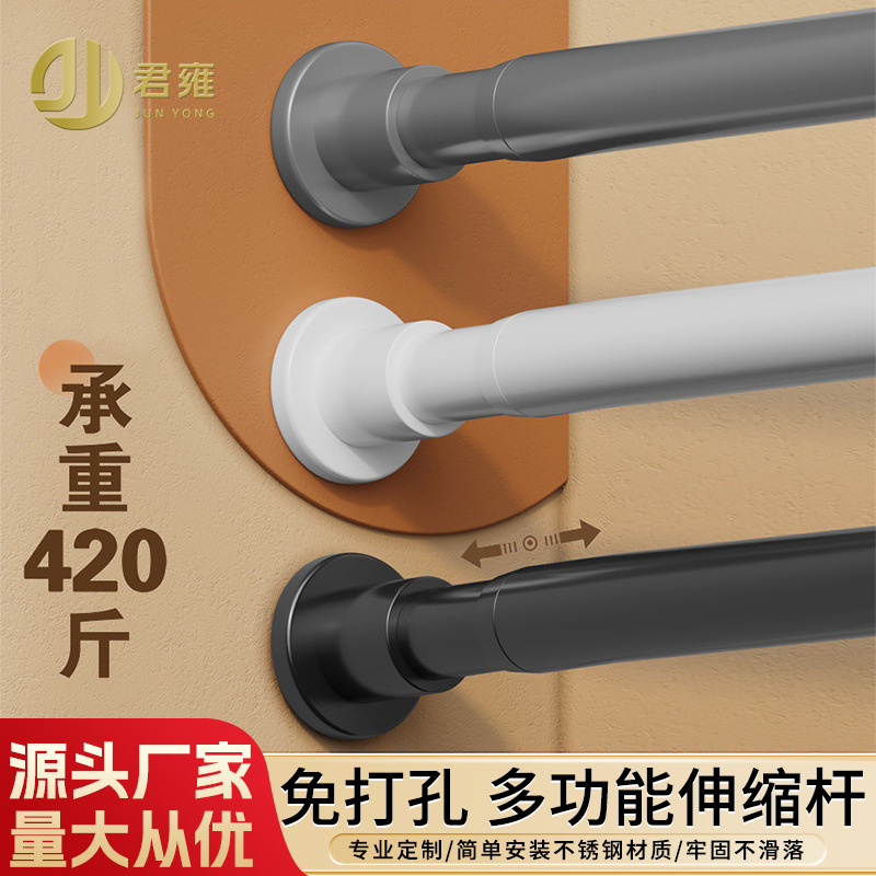 万能伸缩杆免打孔强力承重窗帘杆不锈钢多功能门帘浴室帘衣柜撑杆