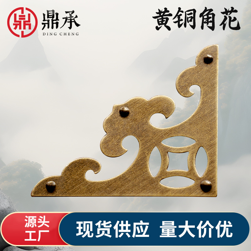 中国アンティーク真鍮コーナープロテクター中国家具樟脳木箱コーナーフラワーテーブルキャビネットラッピング大型全銅コーナー