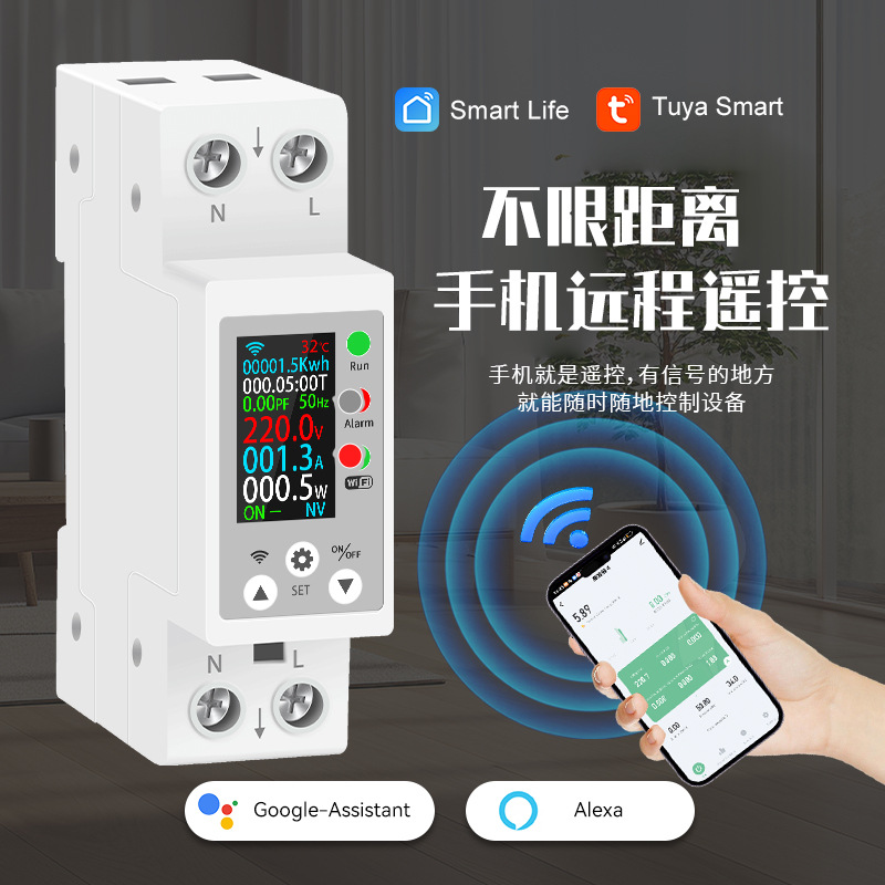 WiFi涂鸦智能数显多功能导轨电压电流表计量手机远程控制外贸