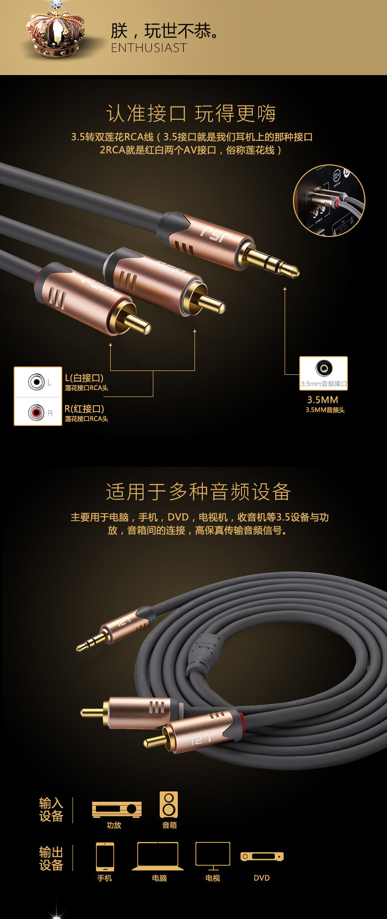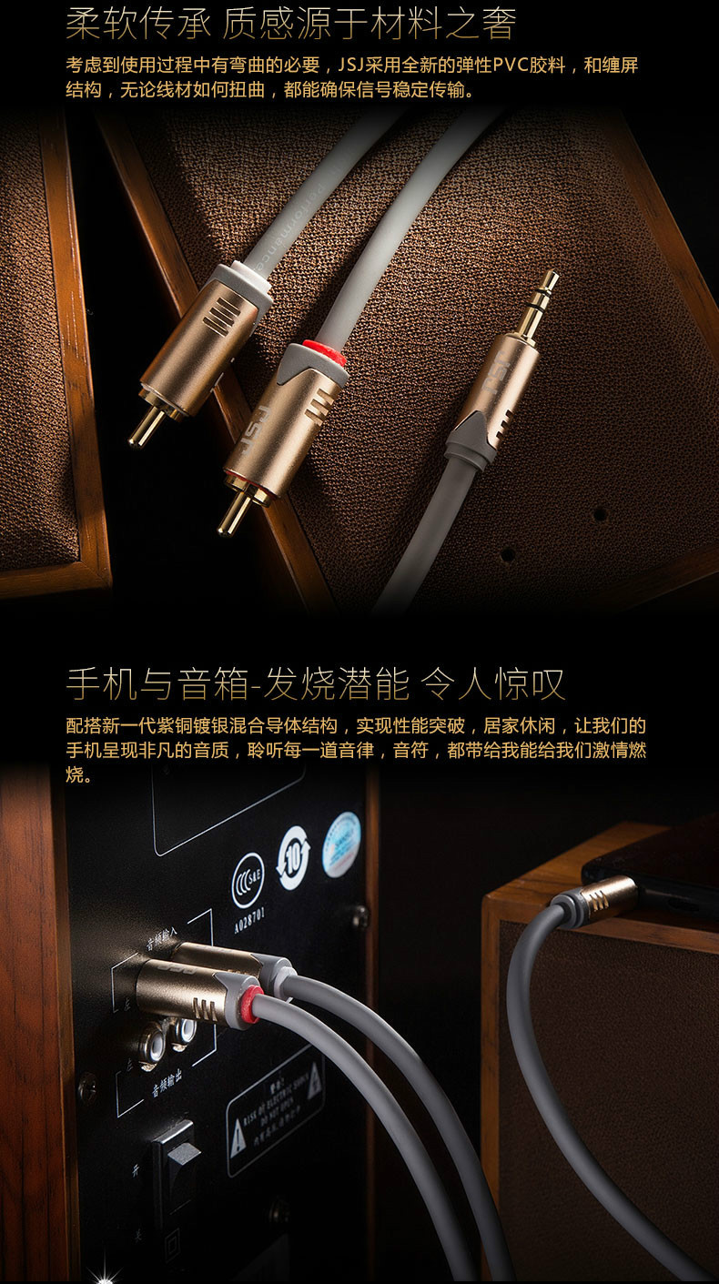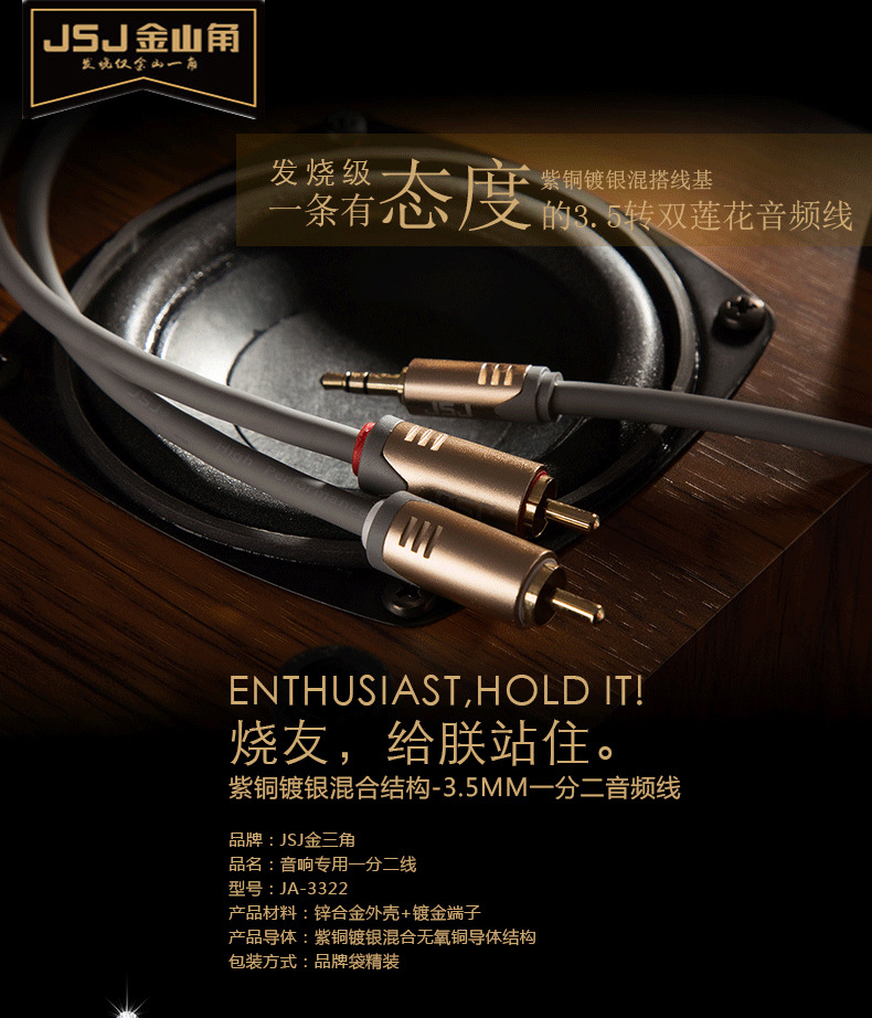JSJ紫銅メッキ銀3.5一分二オーディオケーブル3.5mm回転2rca蓮花携帯電話パソコンスピーカーアンプ