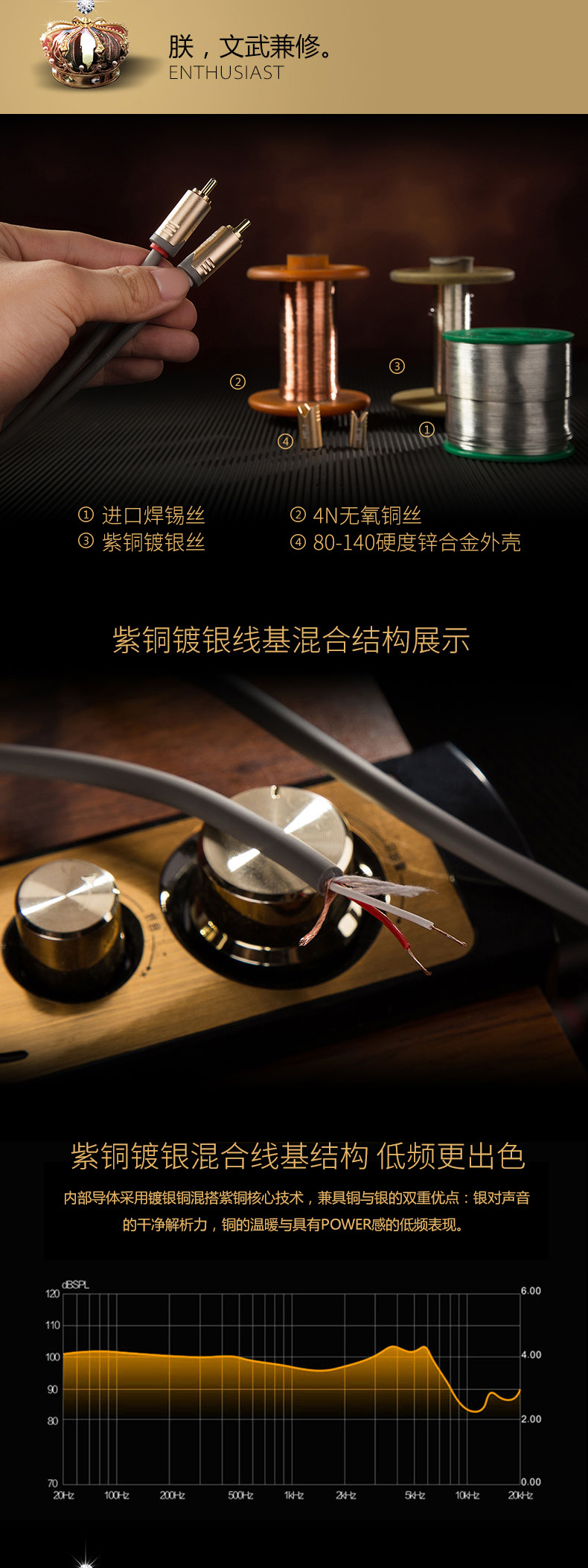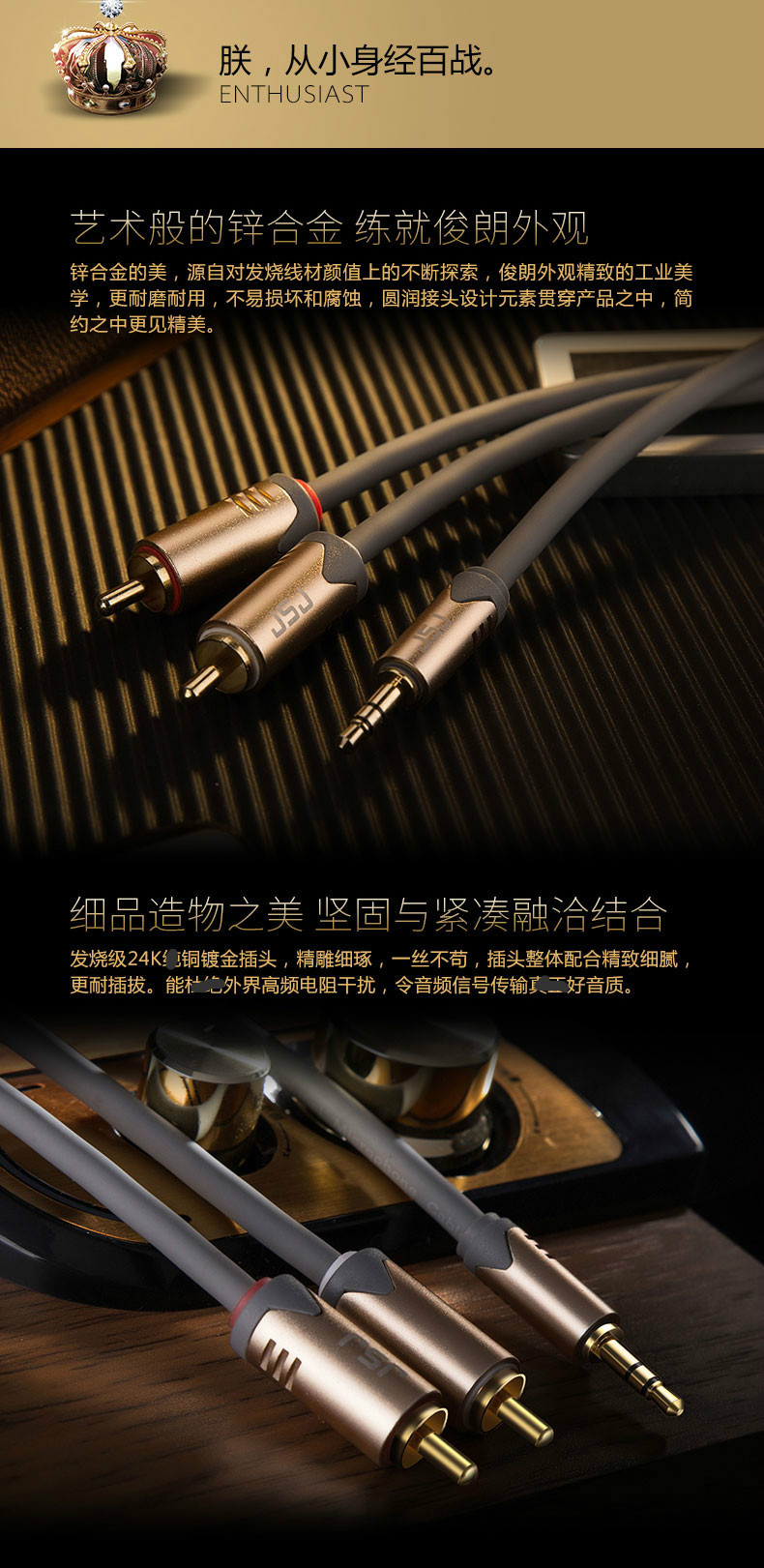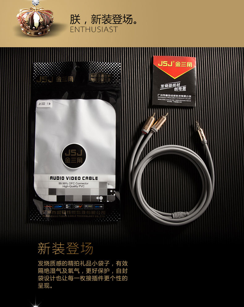 JSJ紫銅メッキ銀3.5一分二オーディオケーブル3.5mm回転2rca蓮花携帯電話パソコンスピーカーアンプ