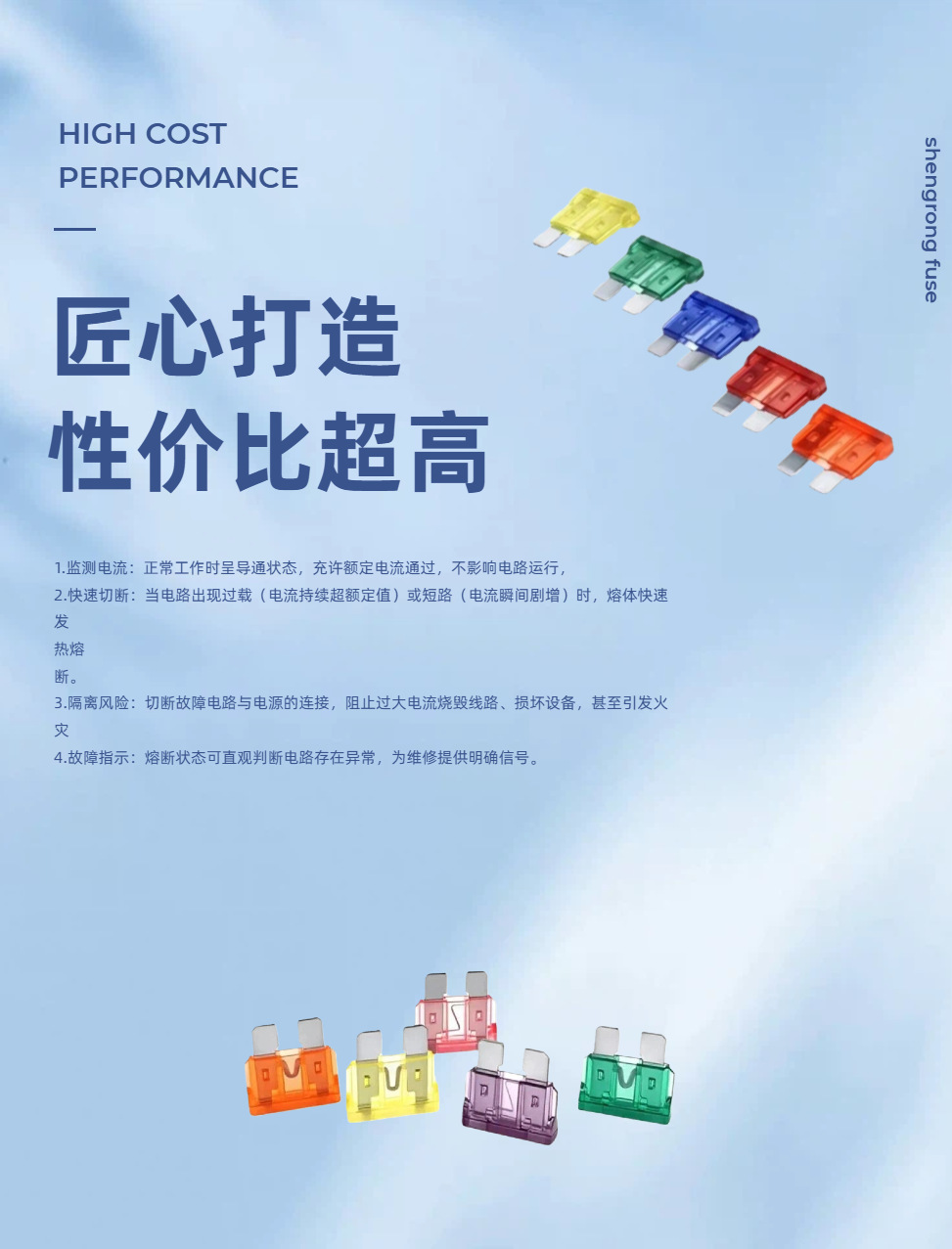聖融自動車専用 JCASE 20A-60A 低電圧平板型短脚角型ボックス精密同型ヒューズ