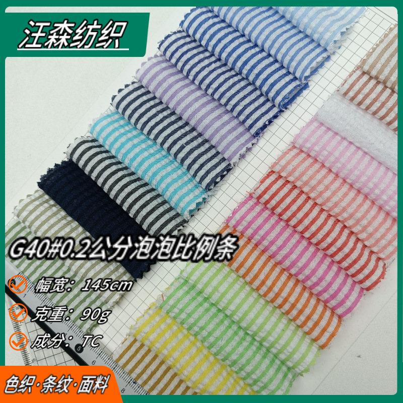 3ミリメートルストライプ色织り先染めバブル糸生地バブル糸ストリップ布泡立て布seersucker
