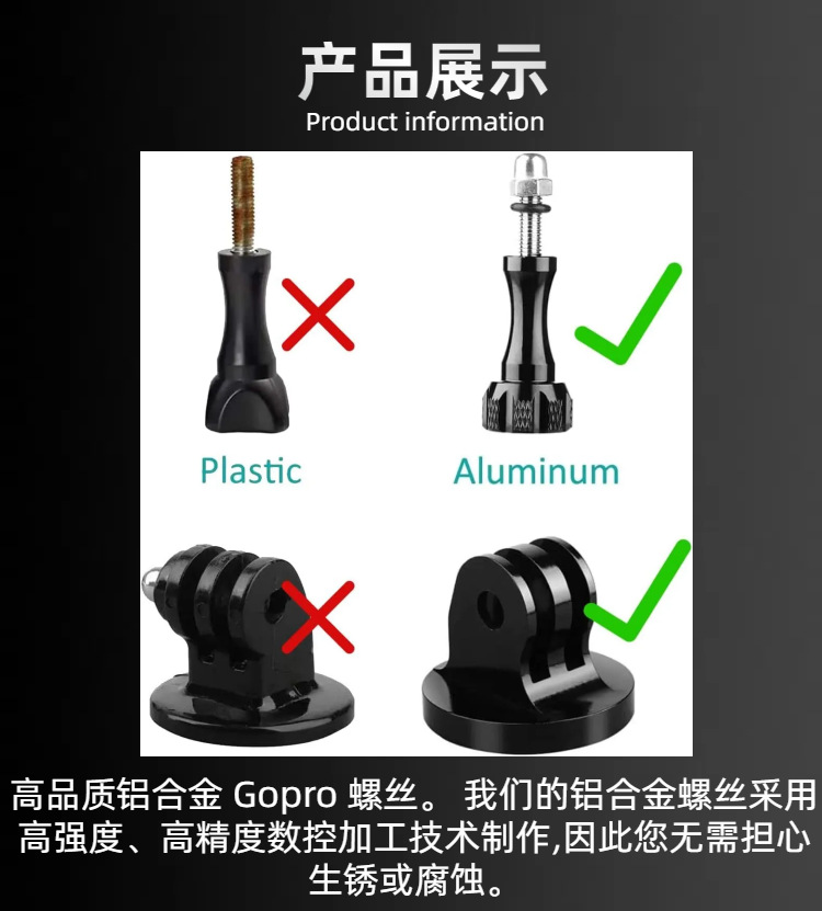 Gopro11スポーツカメラ汎用型金属部品長さ手ねじアルミ合金アダプタスクリュー