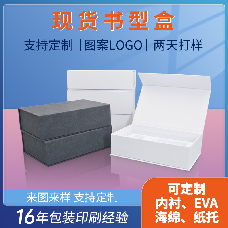 现货白色书型翻盖盒黑色包装礼盒简约创意礼品饰品硬纸盒包装盒