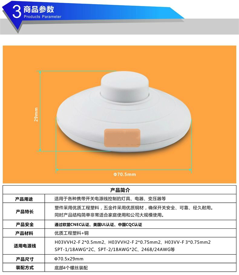 『用途』用于台灯,落地灯主线、DIY灯具开关线