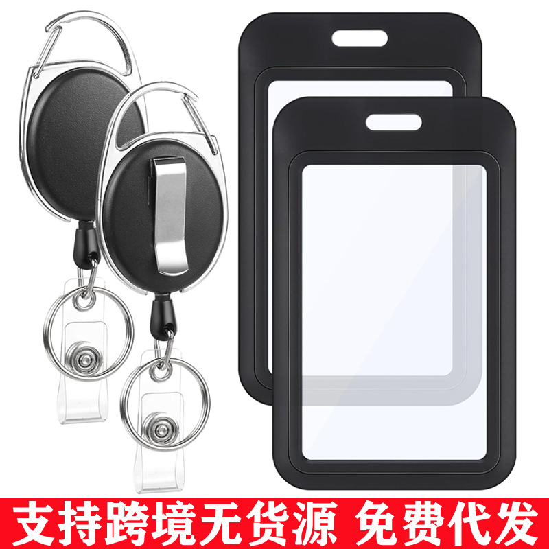 跨境热销椭圆扣可伸缩双面透明证件卡套胸卡胸牌厂牌学生卡套