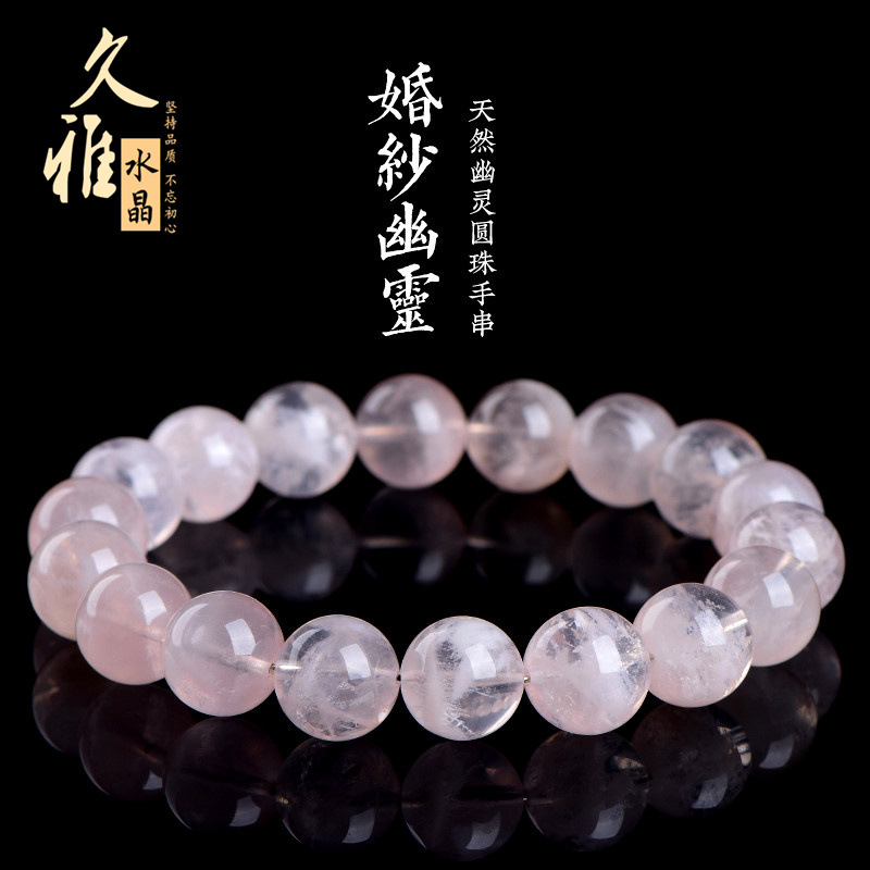 久雅水晶 天然粉色婚纱幽灵圆珠手串 粉白色雪花幽灵散珠手链批发