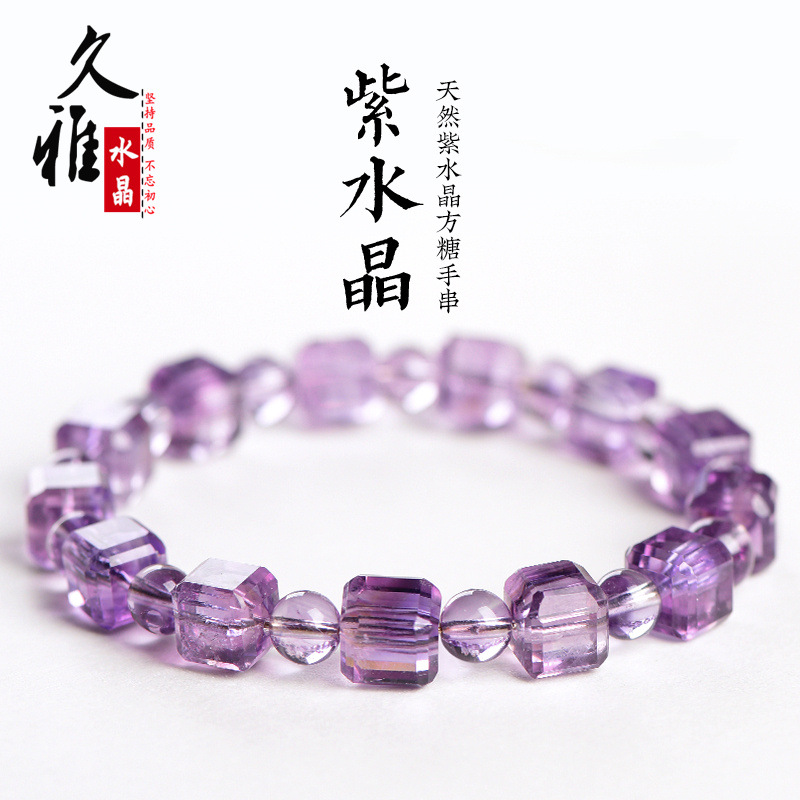 久雅水晶 天然巴西紫水晶方糖手链 浅紫水晶方形手串 厂家直销