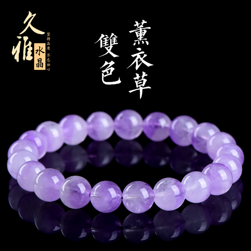 久雅水晶 天然双色薰衣草圆珠手链 浅紫色紫水晶散珠手链 批发
