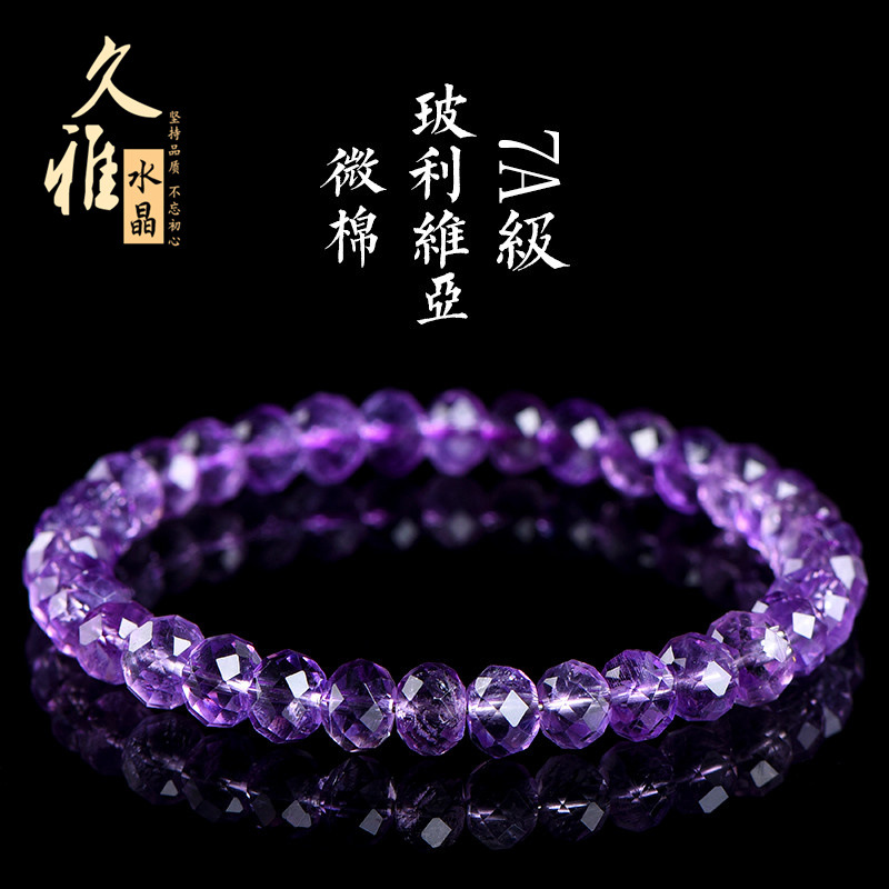 久雅水晶 天然玻利维亚紫水晶刻面盘珠手链 紫色水晶刻面手串