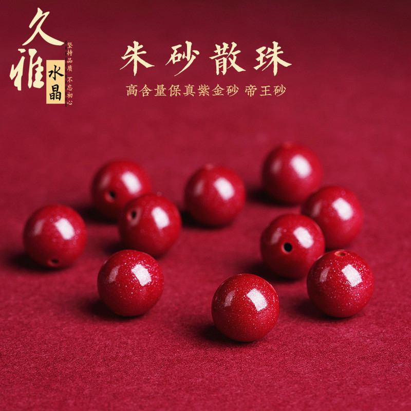 久雅宝石天然原鉱朱砂散珠紫金砂円珠半製品帝王紅砂文遊び配珠