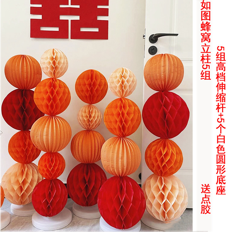 操作说明:蜂窝球围着立柱展开,使用回形针扣到接近杆子的位置即可,建议备一些点胶,黏在蜂窝球闭合的地方,再用回形针扣上,固定好以后更稳定,固定的地方都朝一个方向,这样正面看起来效果都是一致的。