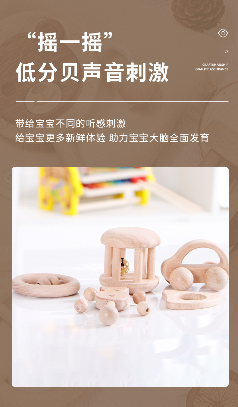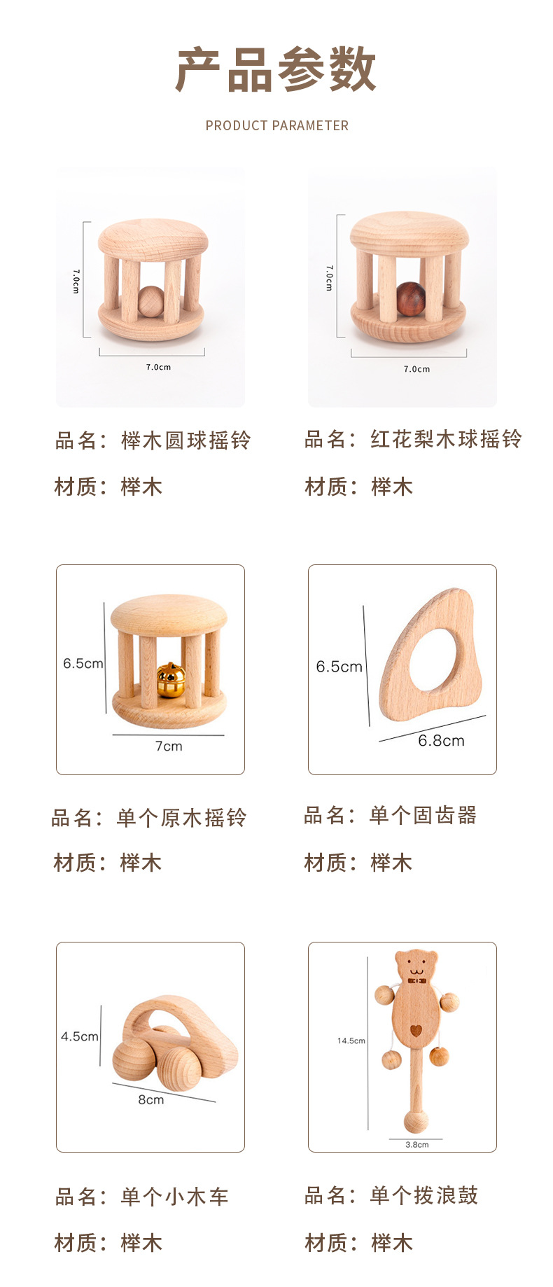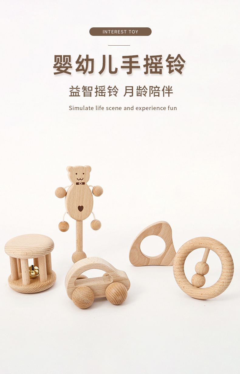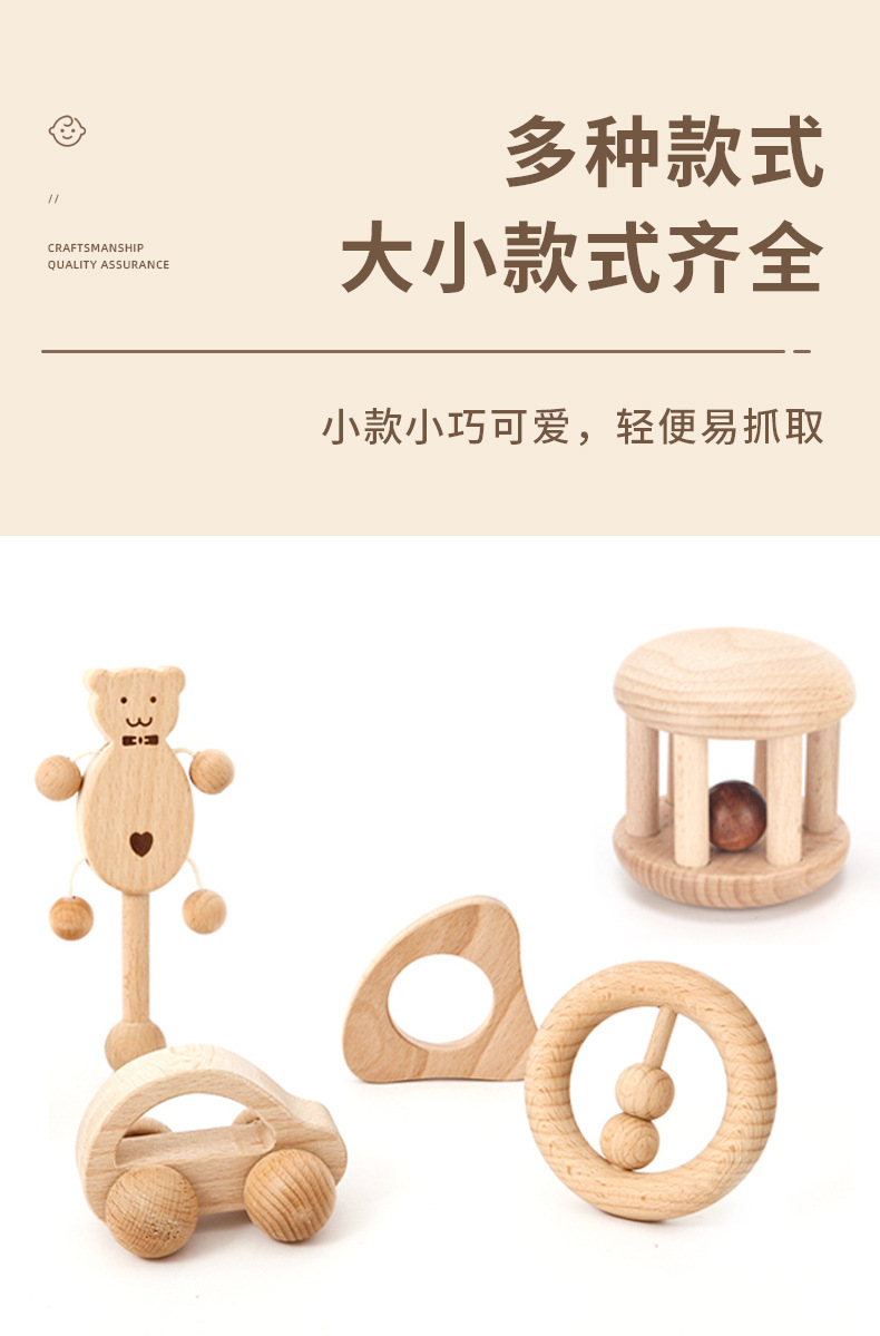 木质婴幼儿玩具拔浪鼓牙胶宝宝百天周岁拍照道具配件玩具木圈小马