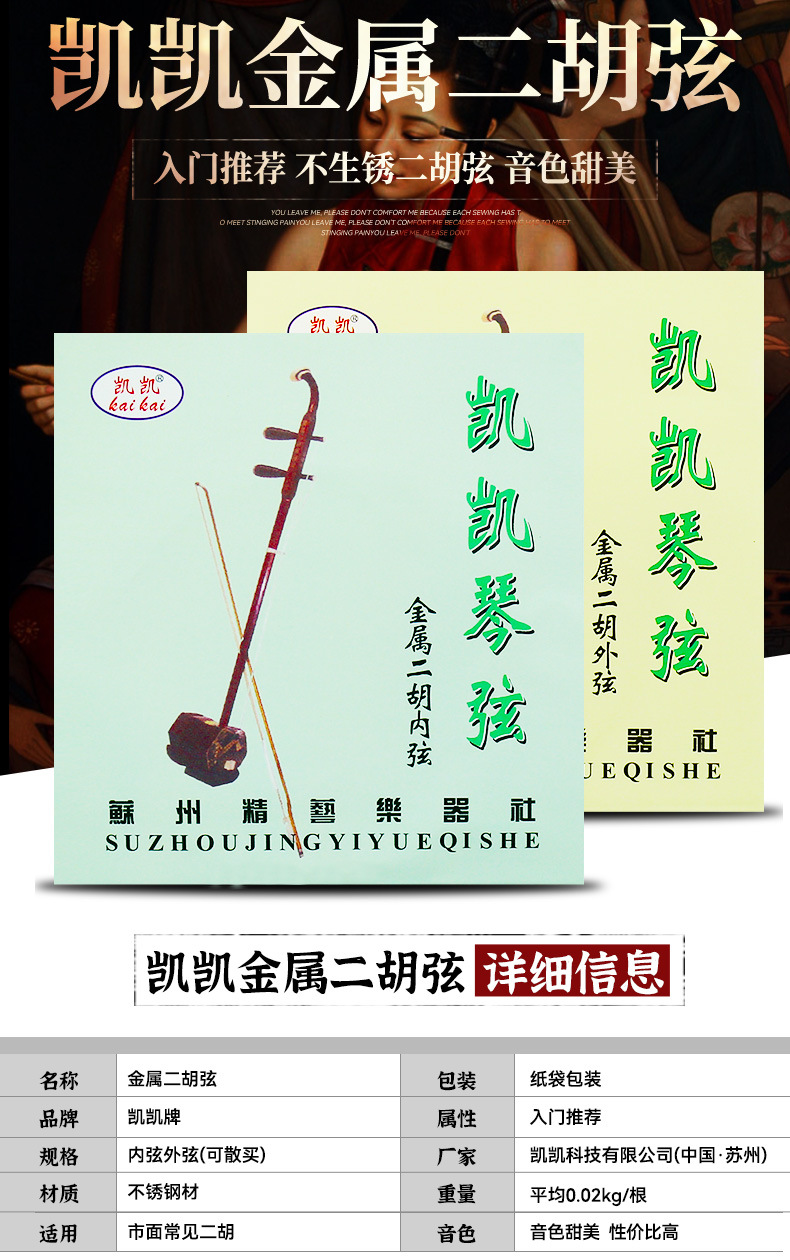 カラー カイカイエントリーメタル二胡弦インナー弦,カイカイエントリーメタル二胡弦アウター弦,カイカイメタル弦セット