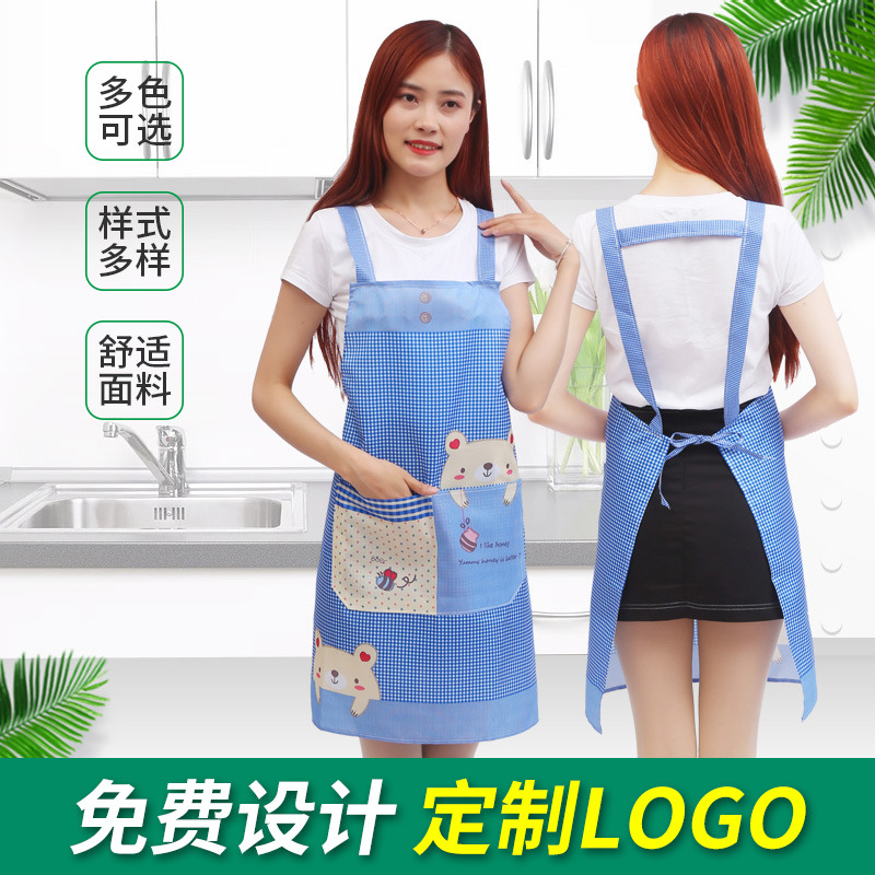 エプロンキッチン漫画エプロンストラップ格子印字シンプル韓国版ホーム広告ギフトかわいいホームエプロン
