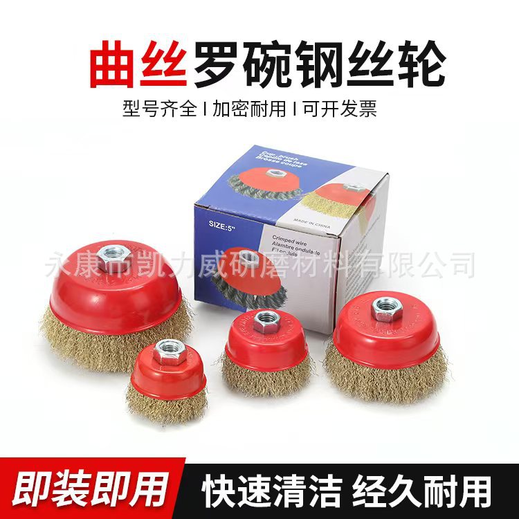 钢丝轮曲丝扭丝罗碗钢丝刷镀铜钢丝高碳钢滚刷抛光打磨除锈管道刷