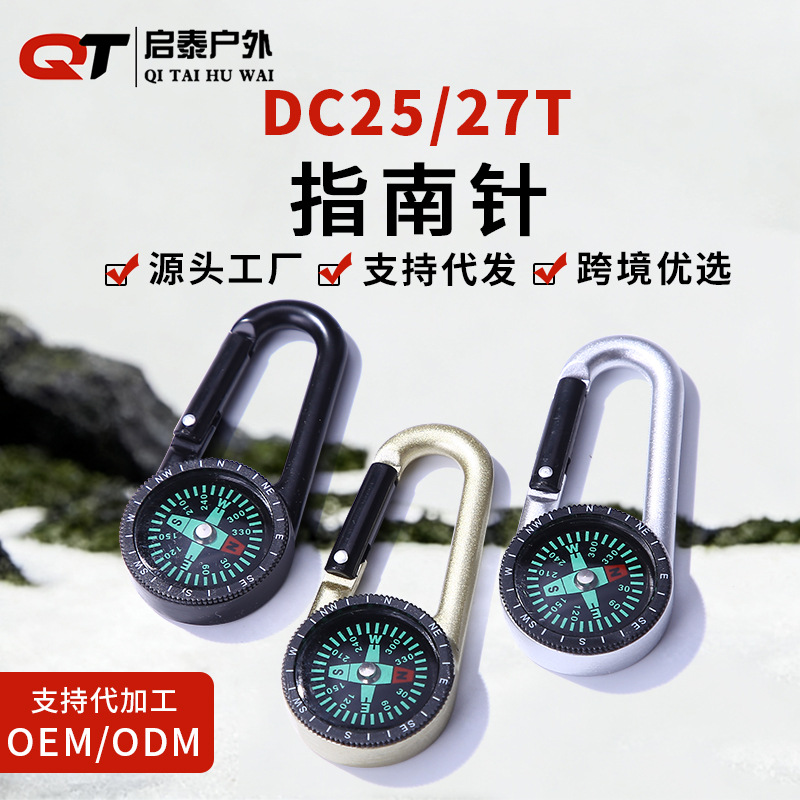 户外用品DC25锌合金指南针DC27T登山扣指南针野营旅游指北针批发