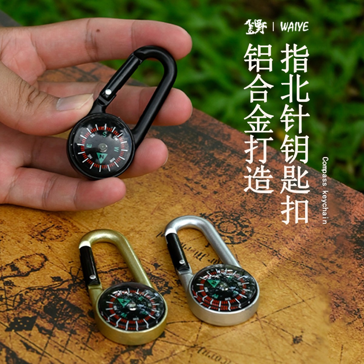 户外铝合金指北针登山扣指南针金属登山扣铝合金登山扣指南针爬山