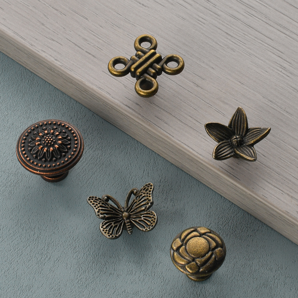 亜鉛合金工芸品の蝶の花の小さい取っ手の復古の取っ手の単穴の引き出しの食器棚の扉は小さい取っ手を結びます。