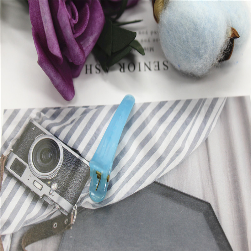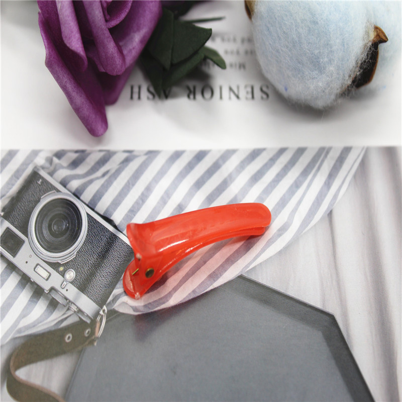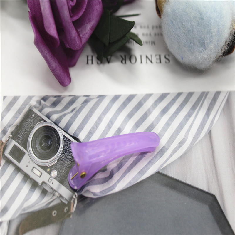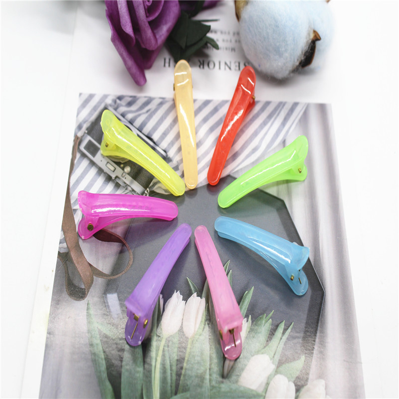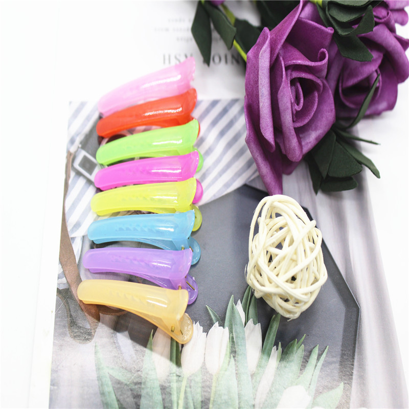 5厘米果冻色塑料鸭嘴夹,也叫鳄鱼夹,实际长度4.7厘米,重3克,有3.5个5和8三个规格,颜色分果冻色和糖果色(实色,不透明),8个颜色。