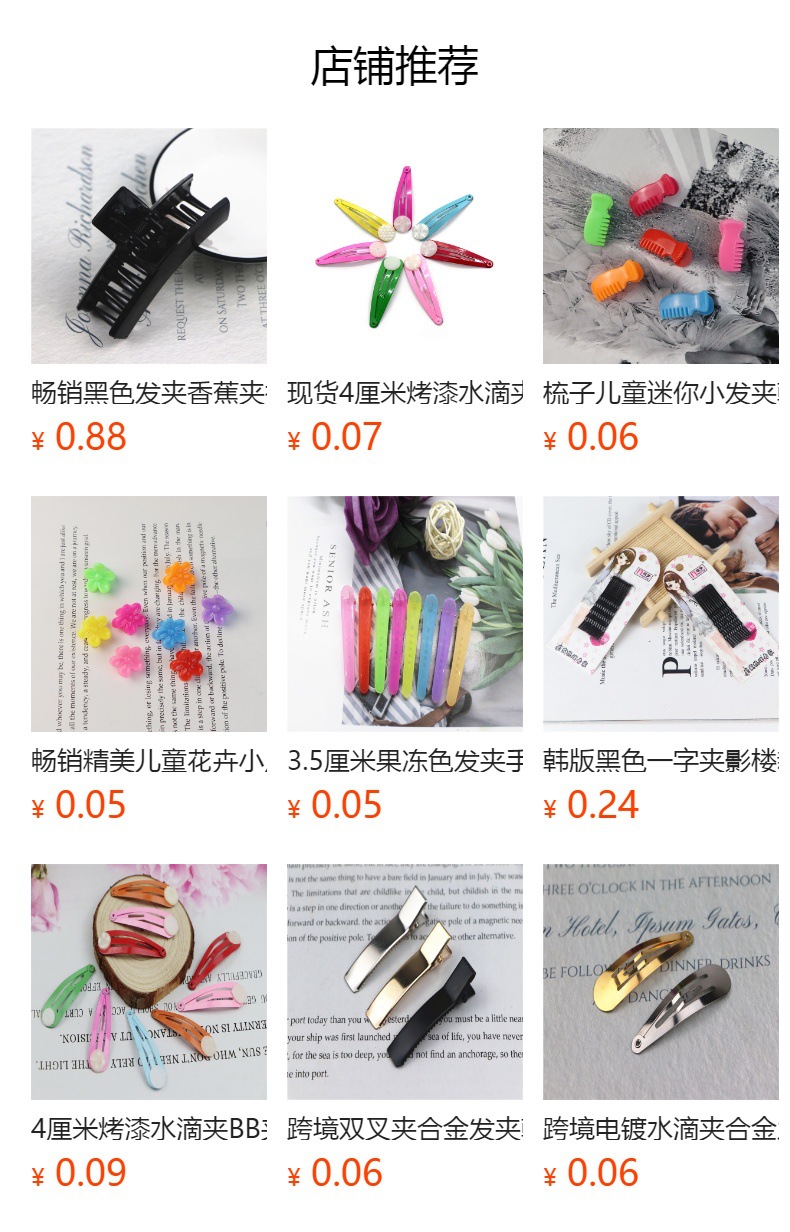 用途:直接可以用来夹头发,也可以在上面粘上布艺蝴蝶结或者树脂配件,钻等,用途广泛。