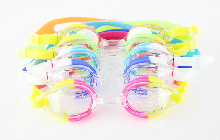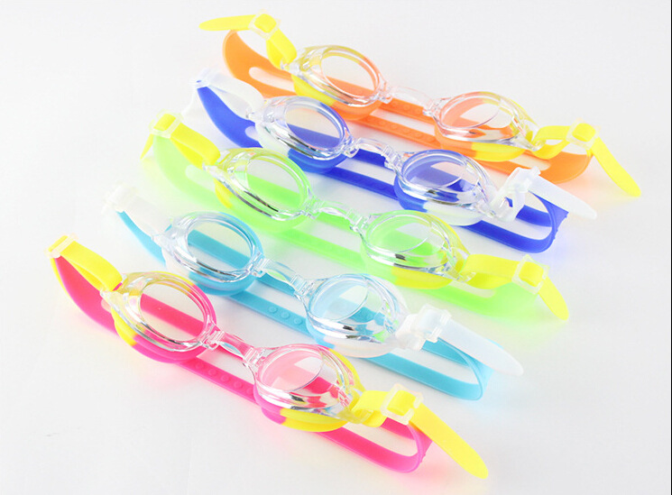 宝贝特点:PC镜片,防水防雾,水底清晰视野!袋装卡通拼色平光泳镜,多颜色可供选择!