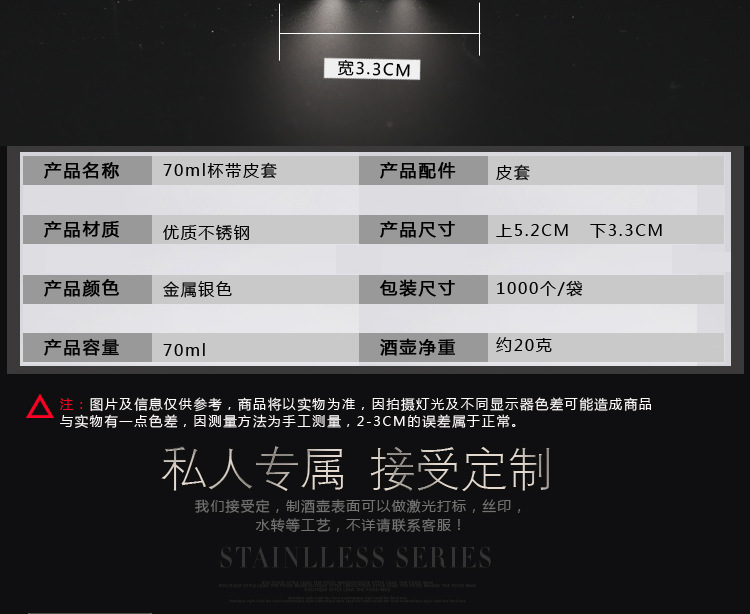 ステンレス製のグラスセット4本の携帯カップ30/70/170ミリリットルでロゴをカスタマイズできる屋外キャンプのグラス