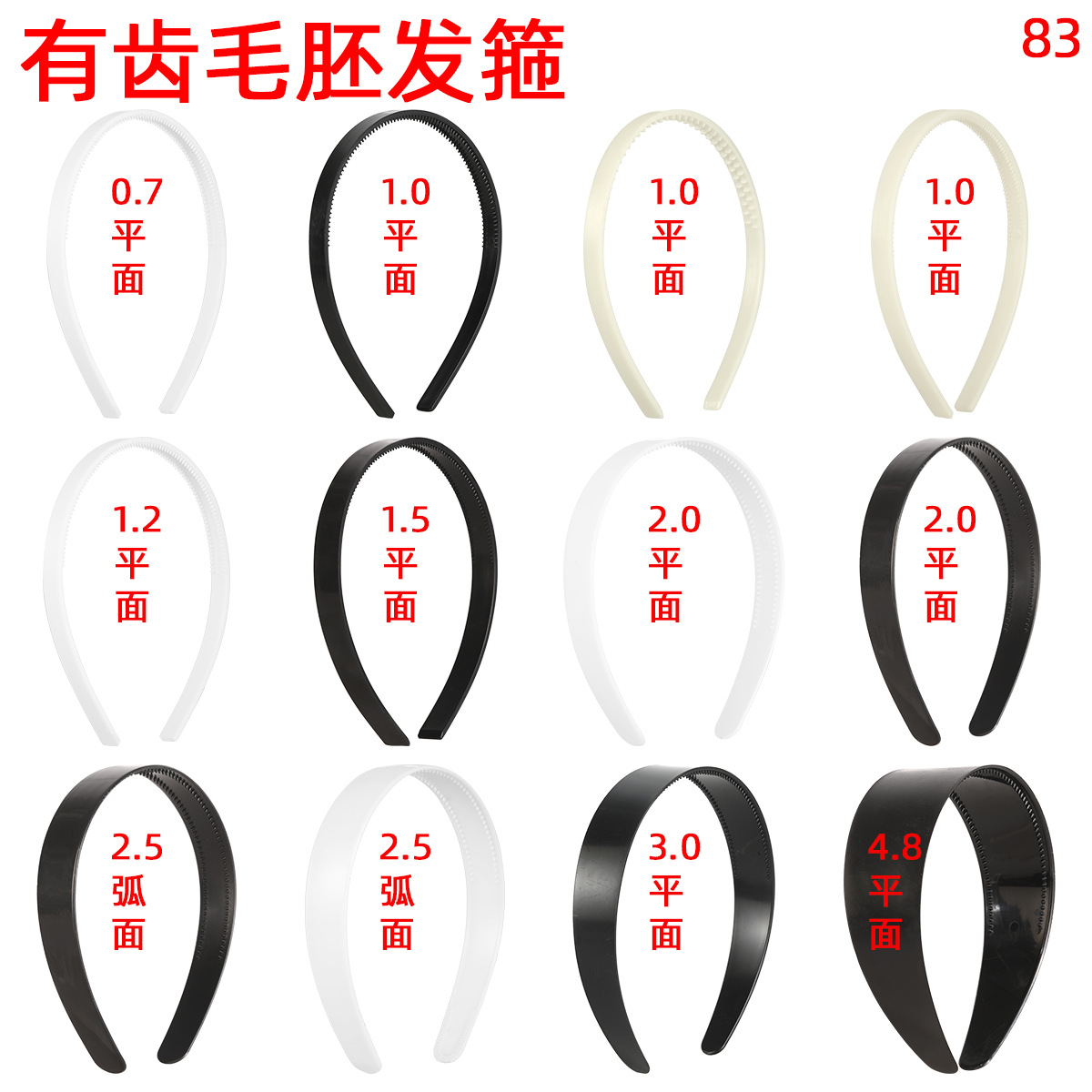 畅销1厘米双排齿发箍,有黑色和白色两个颜色,实际宽度是0.91厘米,长度35厘米左右,重6.4克,1厘米的还有无齿弓背发箍,规格齐全,量大可以定做加工。